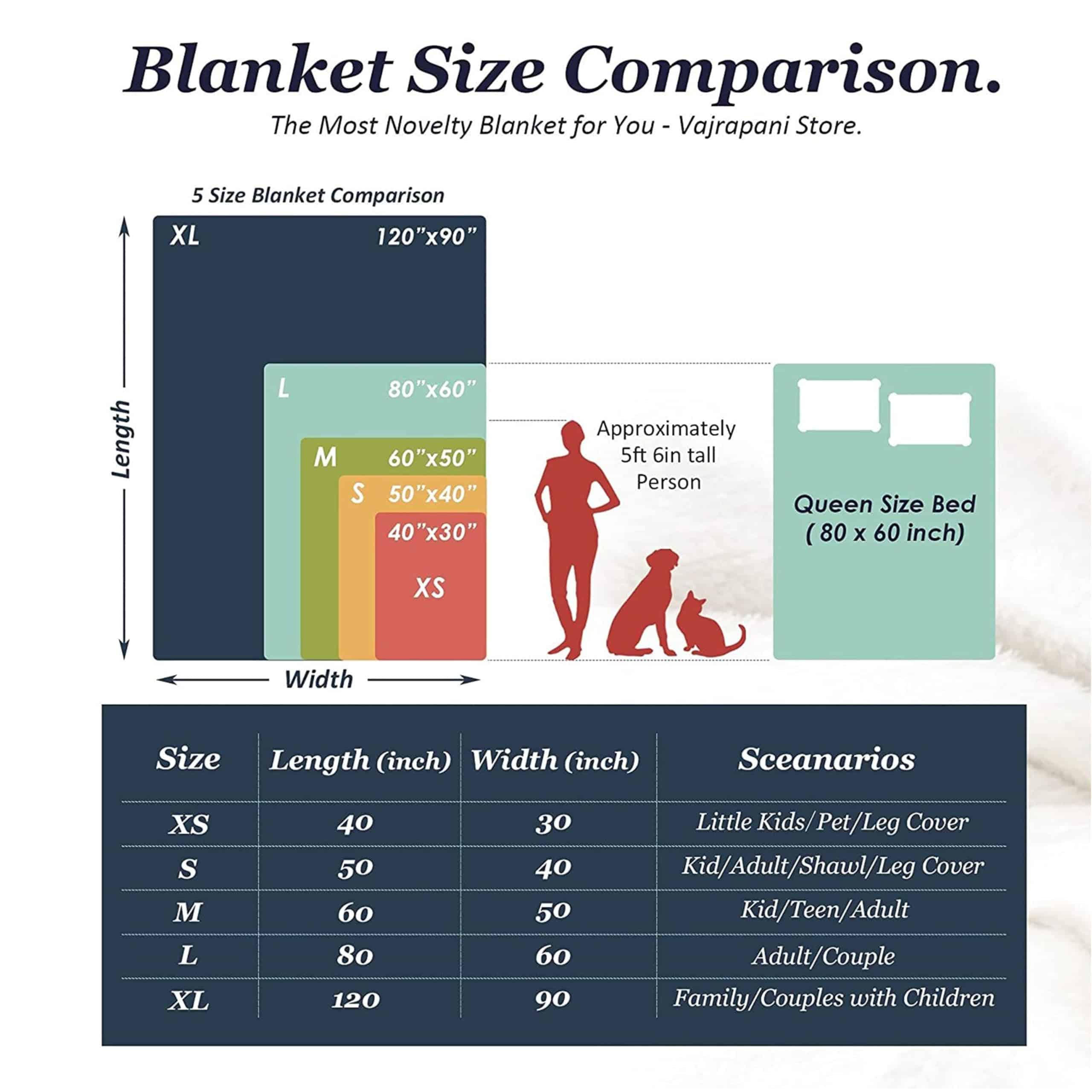 3. ¡5 tamaños disponibles según: Manta pequeña (30 »x40») para bebé, perro o para mantener tus piernas calientes. Manta mediana (40»x50») (50»x60») se puede usar para dormir, leer, jugar con dispositivos electrónicos. Manta grande (60»x80») (90»x120») es adecuada para la cama, sofá.