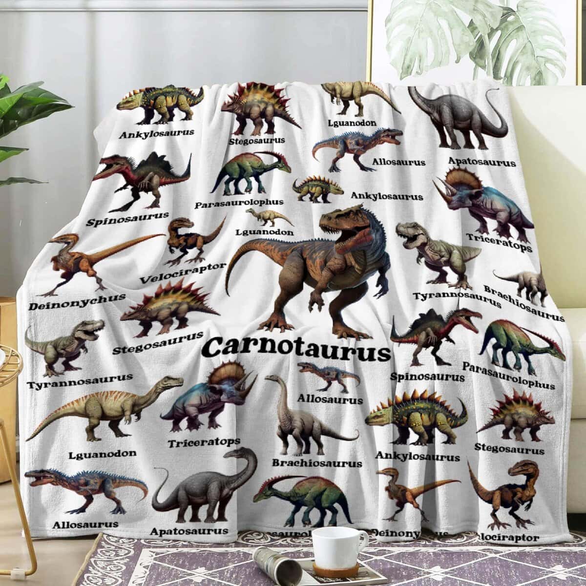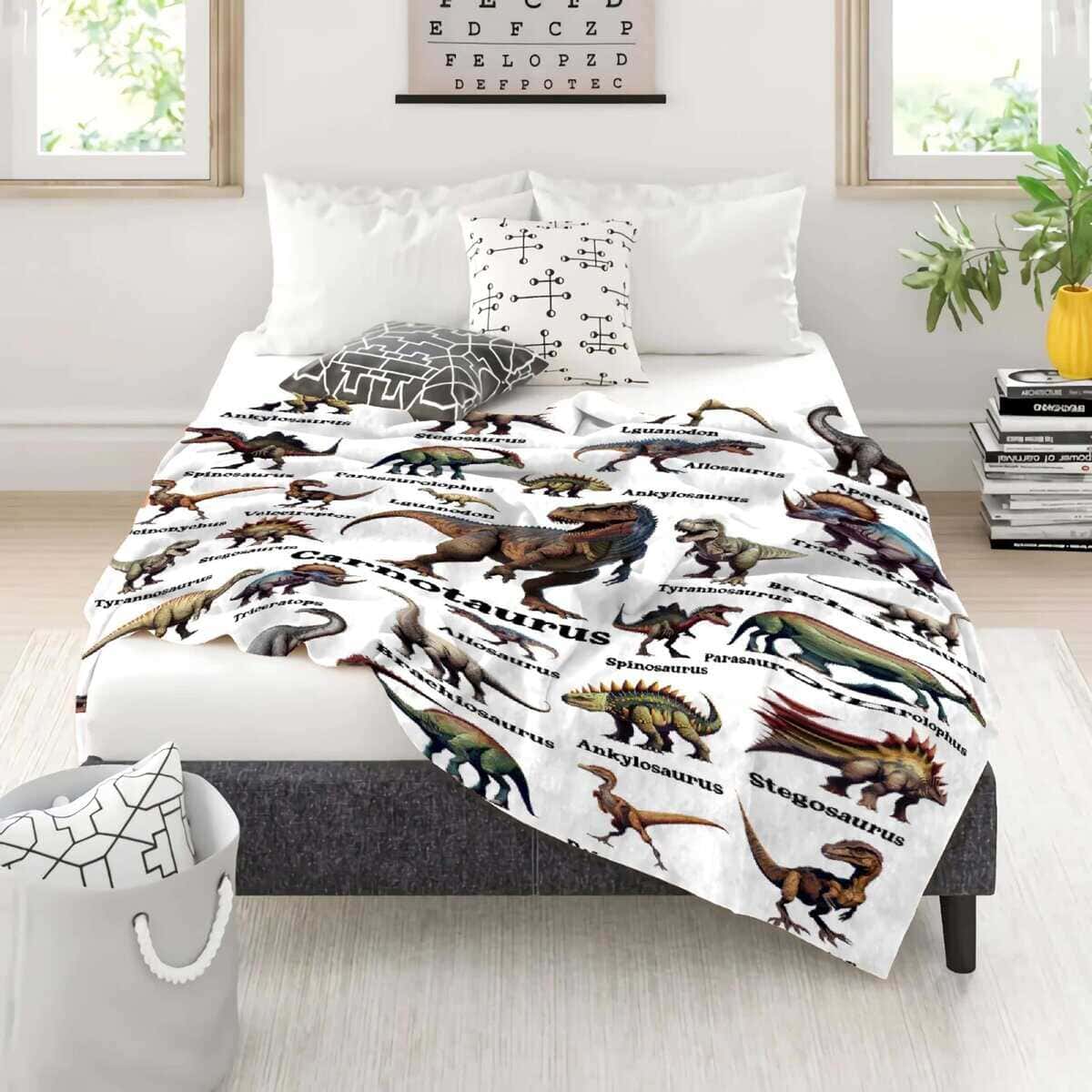 Manta de Dinosaurio Regalo para Niños, -Blanco con Dinosauri