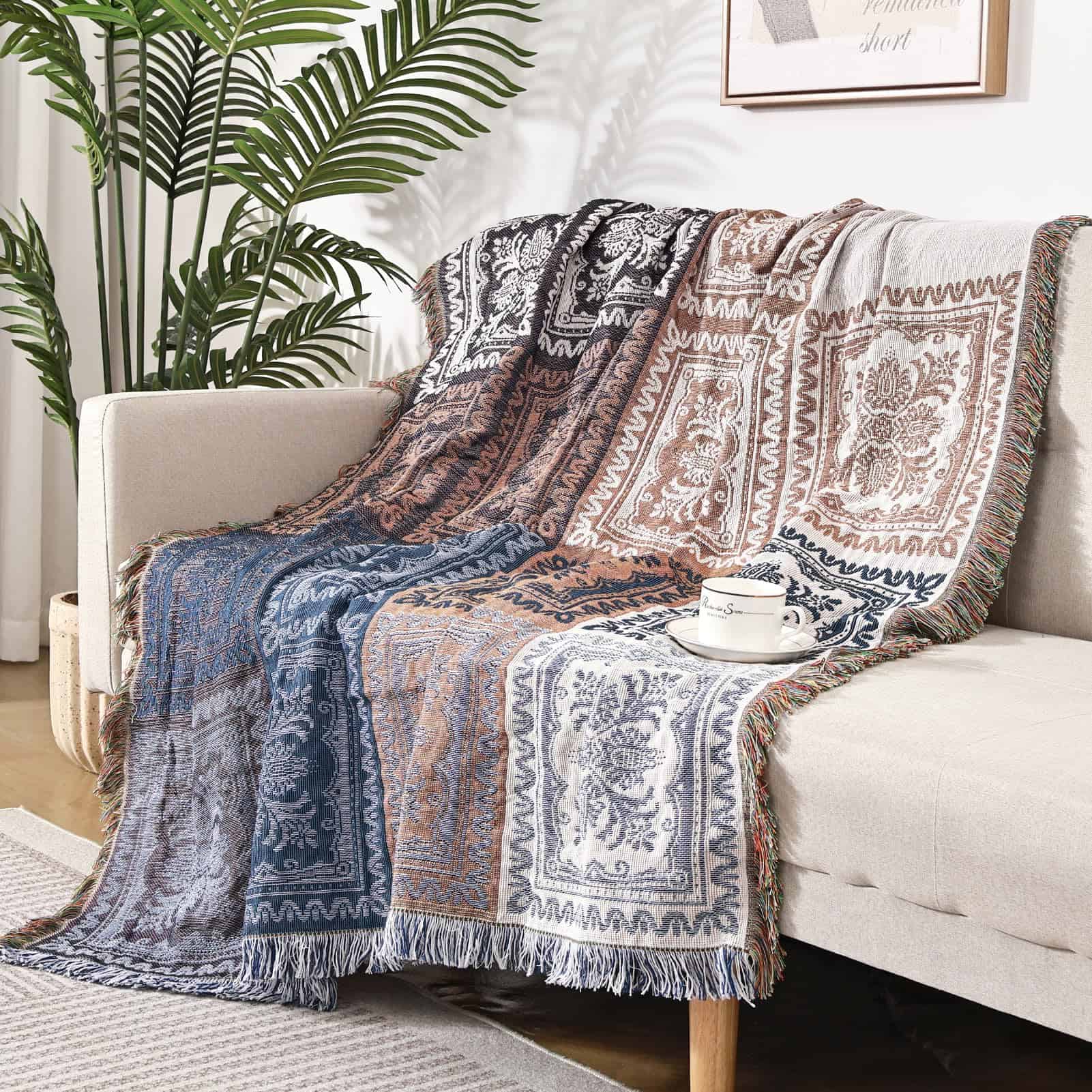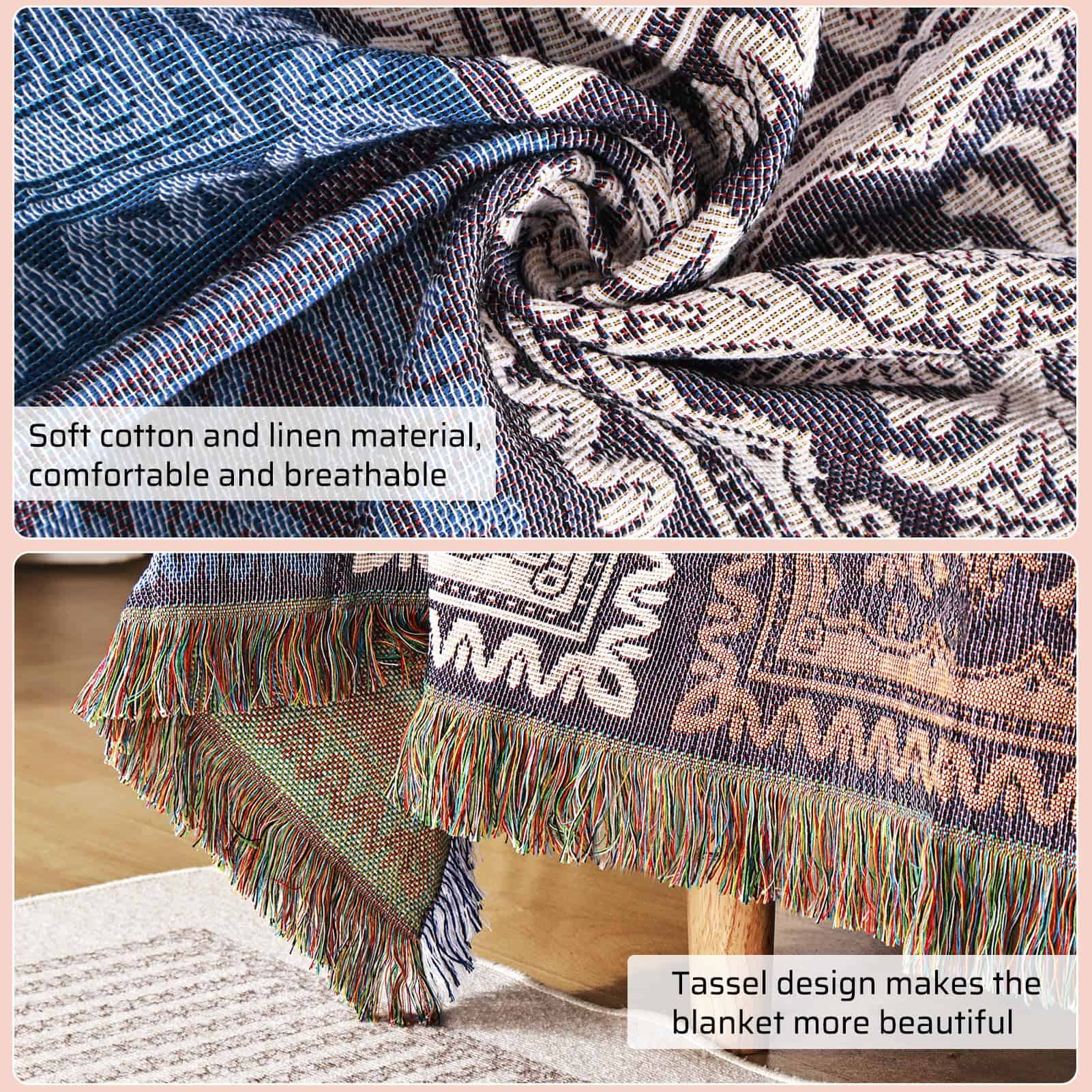 3. Versatilidad amplia: El patrón bohemio de la manta es perfecto para usar como colcha rústica durante la siesta, como decoración para vestir tu cálido hogar mientras protege tu cama y sofá de la suciedad y manchas. Además, también es adecuado para usar en escenarios al aire libre como viajes o picnics.