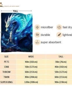 Manta de Dragón Azul Manta de Tiro de Dragón Regalo de