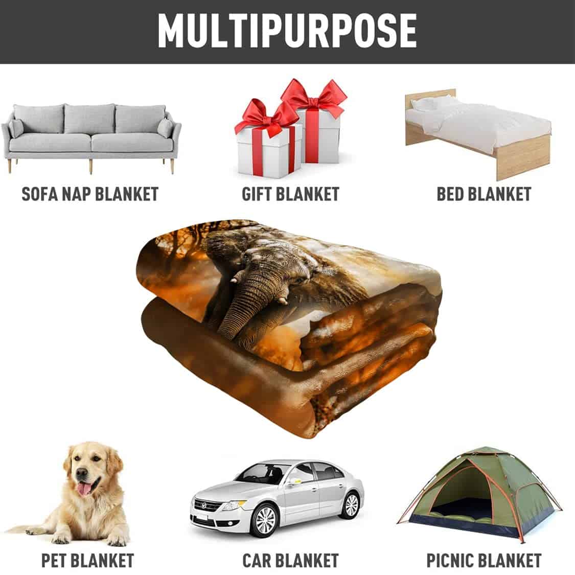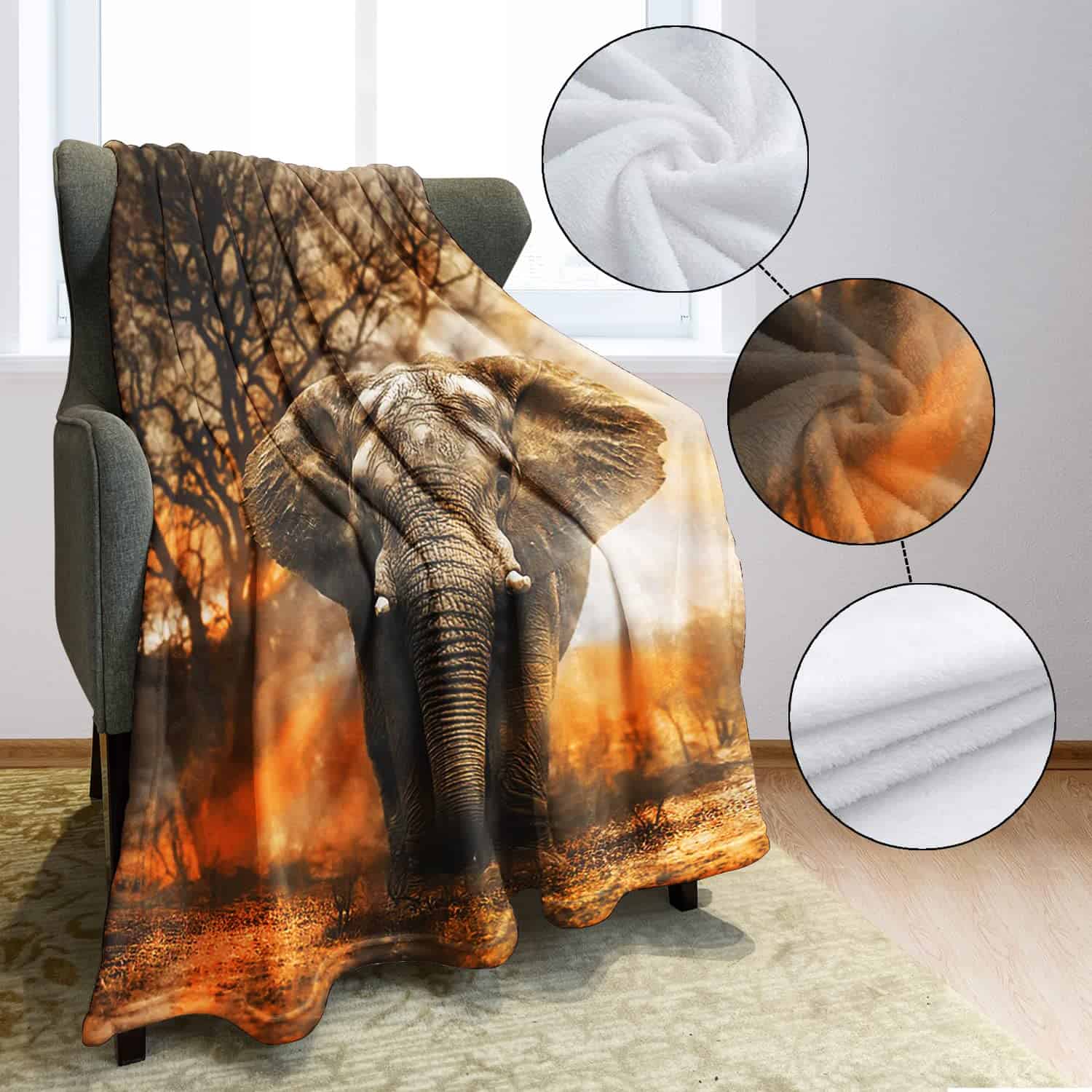 Manta de Elefante Africano Naranja HommomH 60″x80″ Suave y