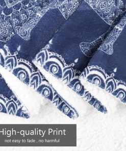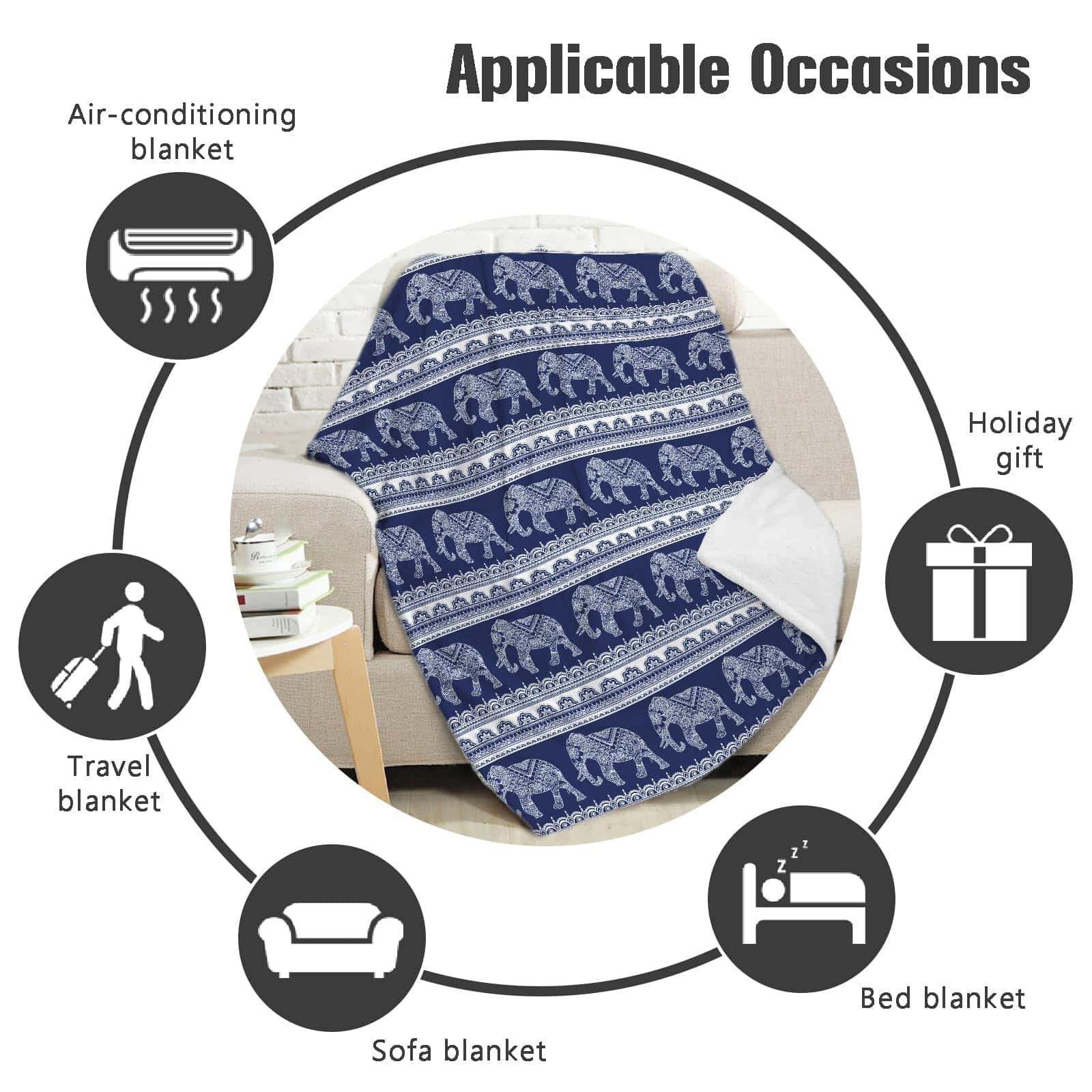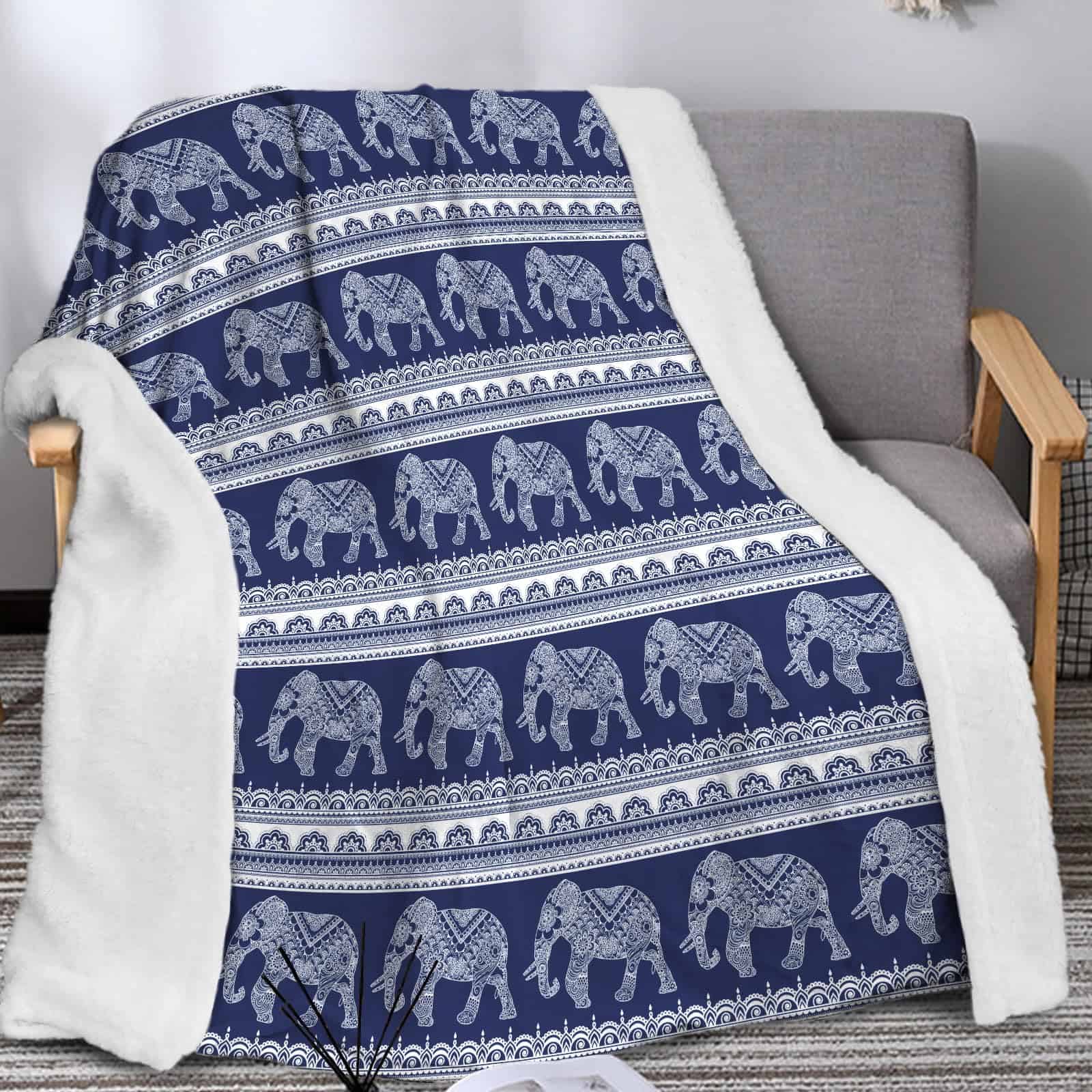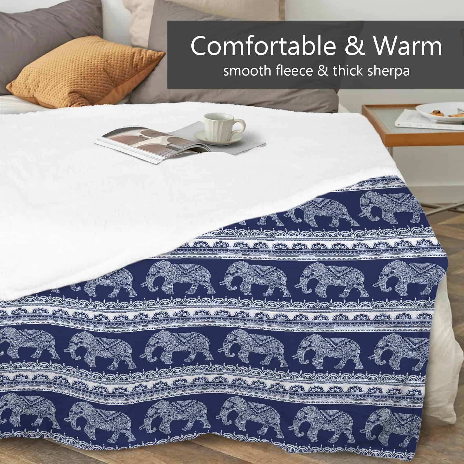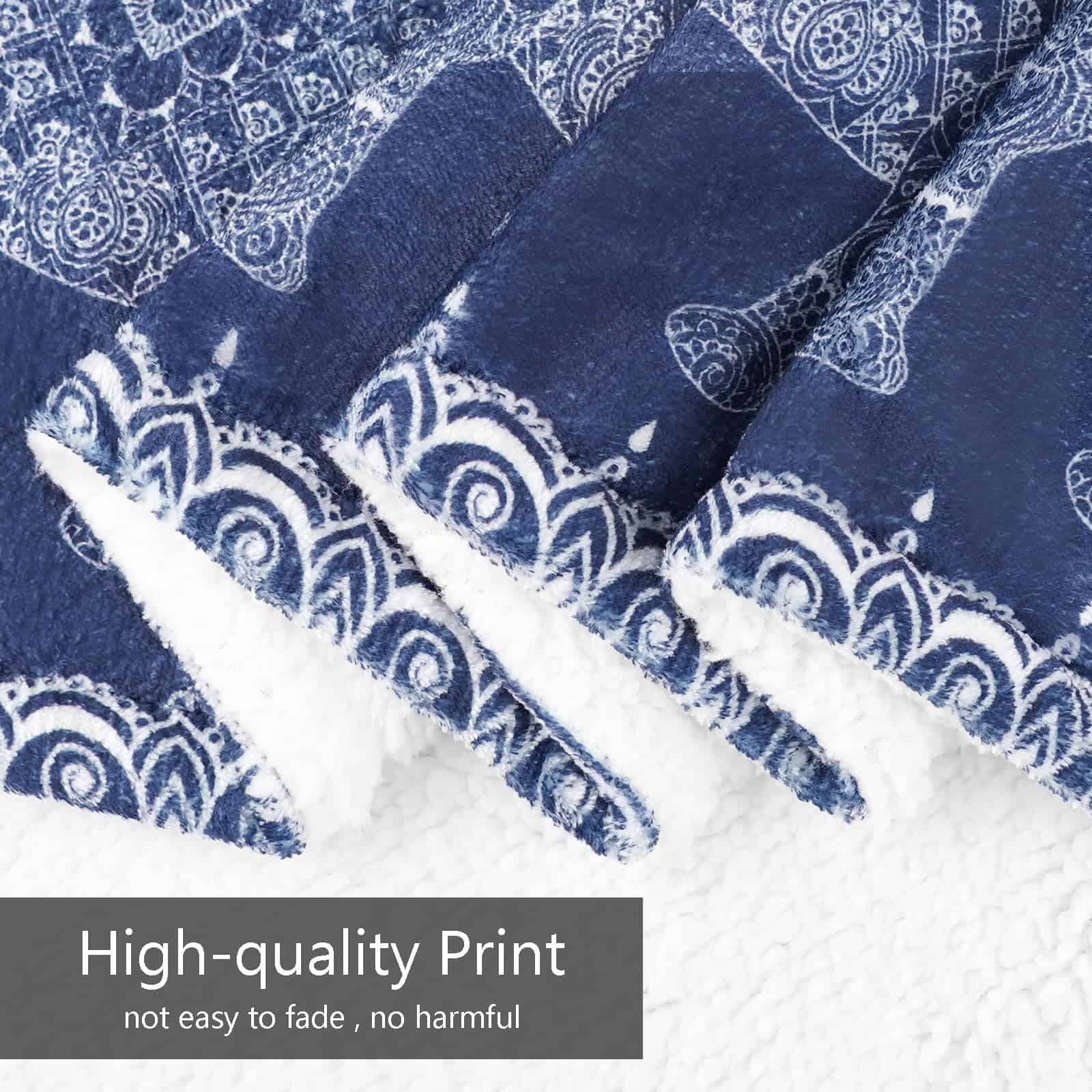 60″ 80″ Sherpa Fleece Elephant Blanket Navy Blue Mandala Floral Blue Elephant Throw Blankets for Couch Sofa Bed Boho Bohemian Elephant Stuff Gifts for Women Adults