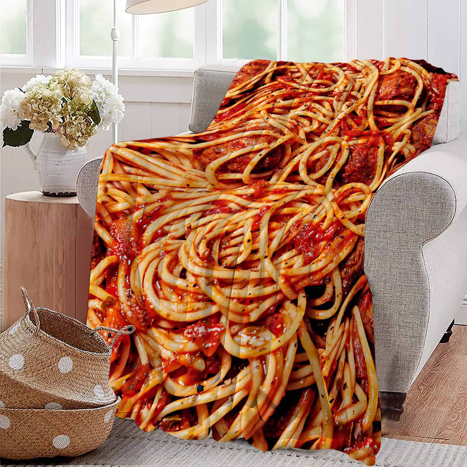 Manta de Espaguetis de Tomate Suave y Cálida para Sofá Cama
