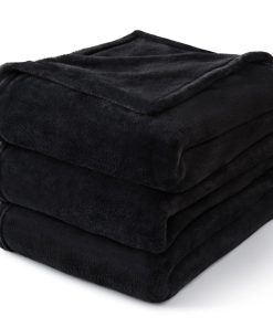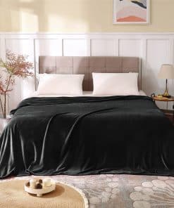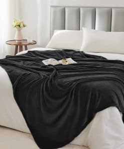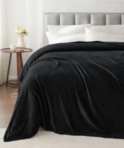 Manta de Felpa BEDELITE Negro para Sofá y Cama, Manta de Lujo Mullida y Acogedora 84″ x 90″, Súper Suave Ligera para Viajes y Camping