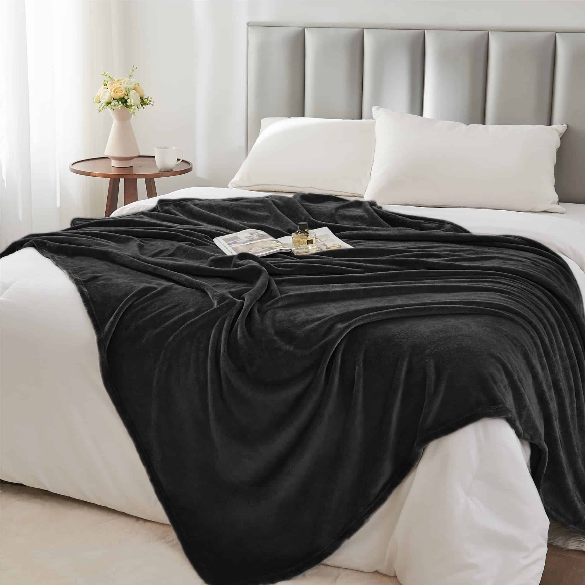Manta de Felpa BEDELITE Negro para Sofá y Cama, Manta de