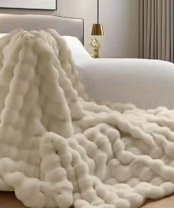 ¡Envuélvete en la máxima comodidad con esta Manta Peluda hecha de suave piel de imitación de conejo! ¡Diseñada para llevar lujo y calidez a tu hogar! La acogedora manta de piel falsa presenta un diseño único de burbujas que añade textura y estilo a cualquier habitación. Perfecta para acurrucarse en el sofá, colocar sobre tu cama o agregar un toque de elegancia a tu espacio vital. Esta gran manta de piel falsa es perfecta para relajarse en el sofá o agregar un lujo cálido y cómodo a tu cama. ¡Duradera con fácil cuidado y perfecta para todas las estaciones!