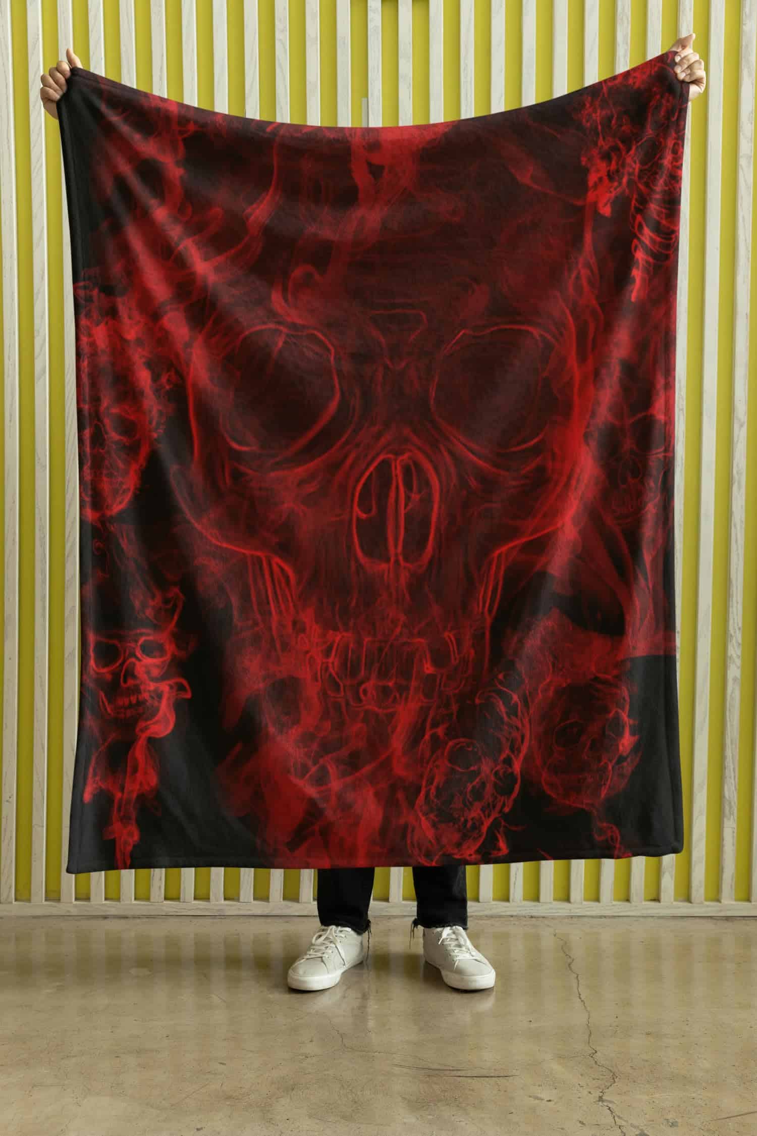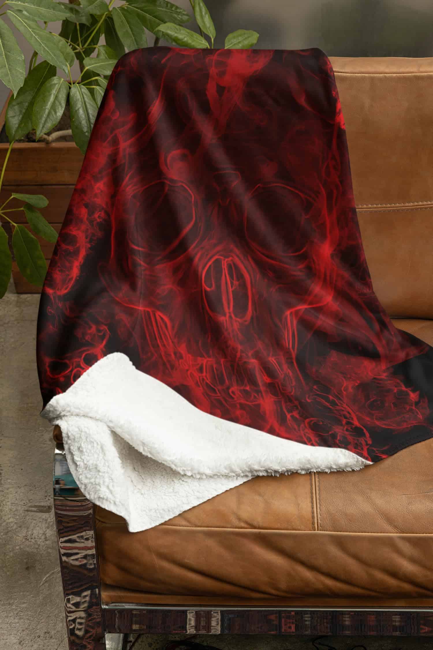 Manta de Felpa con Diseño de Calavera Roja – Gris Lobo