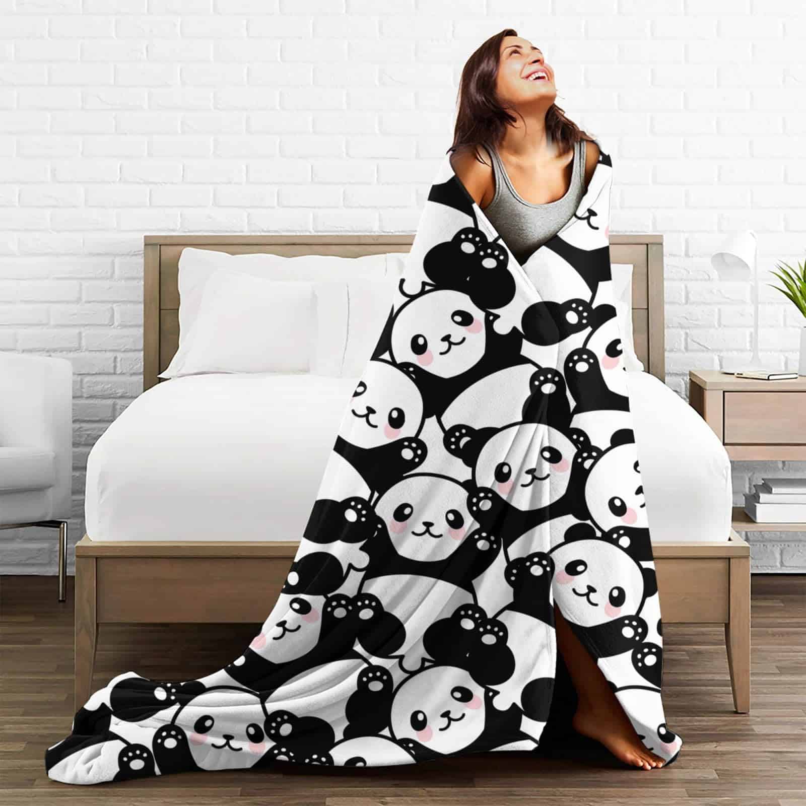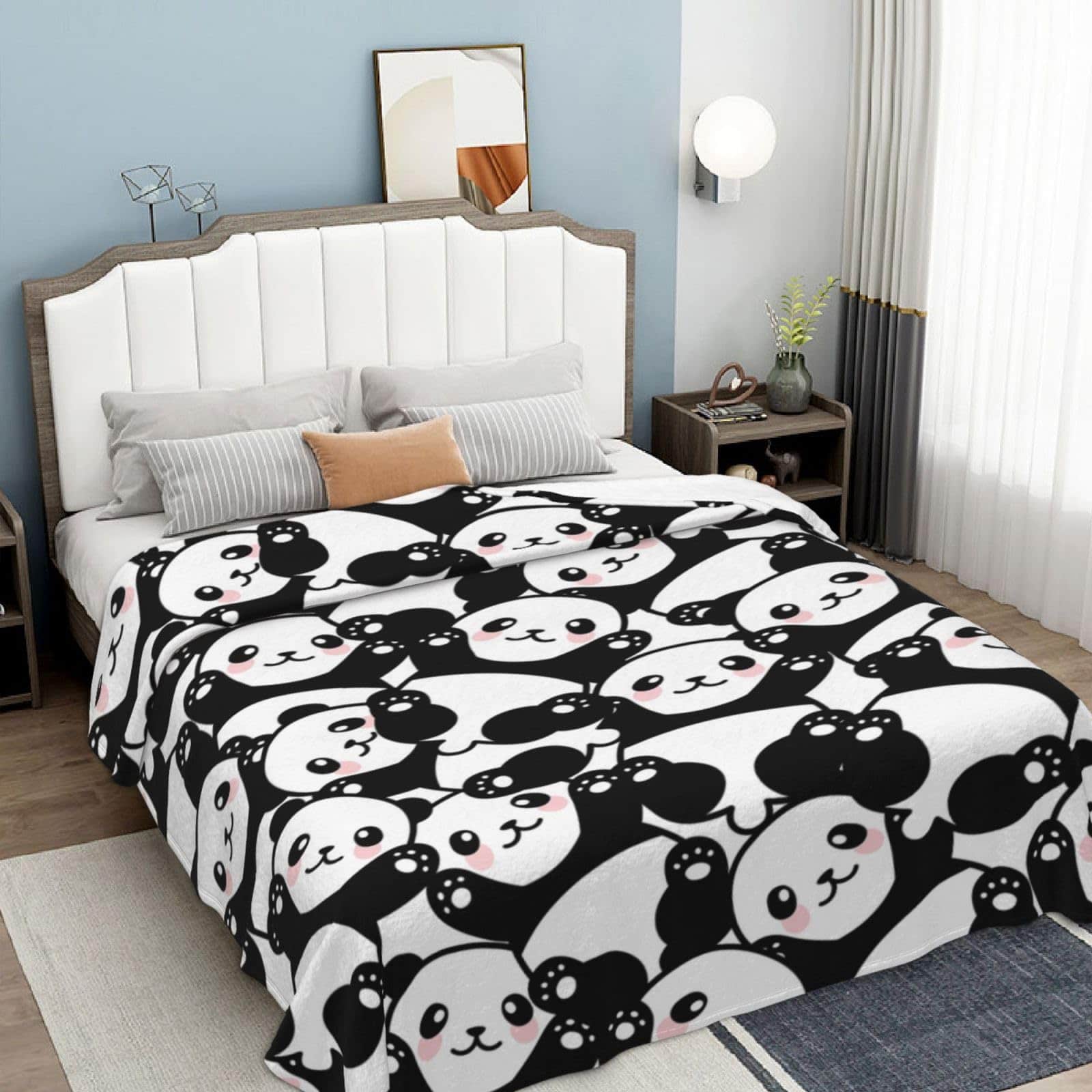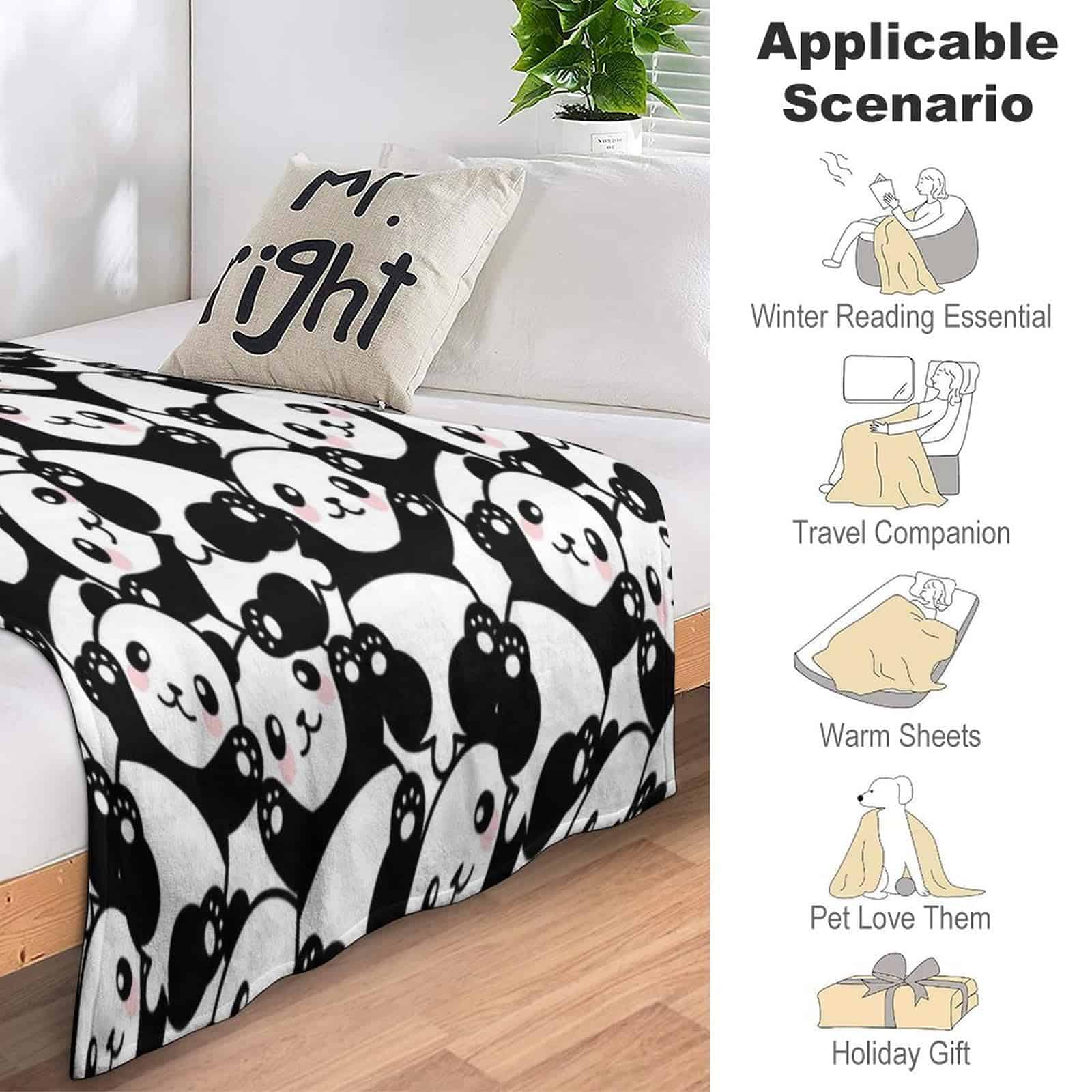 Manta de Felpa con Estampado de Panda, Súper Suave y