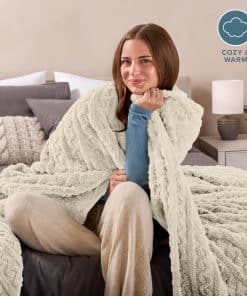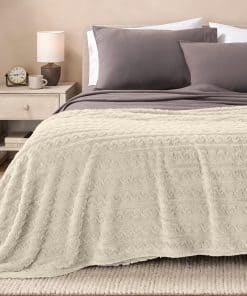 Manta de Felpa de Imitación Bare Home – Manta para Cama Twin/Twin XL – Manta para Cama, Sofá, Sillón, Camping, Viajes y Regalos – Cálida y Ligera – Manta Esponjosa y Suave (Twin/Twin XL, Cable Oyster)