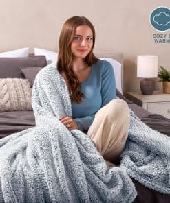 Bare Home Faux Shearling Blanket – King Blanket – Blanket for Bed, Sofa, Couch, Camping, Travel, and Gifts – Warm & Lightweight – Fluffy & Soft Plush Blanket (King, Tipped Dusty Blue)