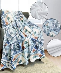 Manta de felpa HommomH 60″ x 80″ Azul Billete de 100