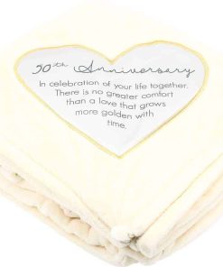 Manta de 50″ x 60″, empaquetada en una caja abierta envuelta en cinta, está hecha de poliéster real de felpa de alta calidad de 320 GSM y cuenta con un detalle de seda. Diseño interno: Texto «50th Anniversary; In Celebration Of Your Life Together. There Is No Greater Comfort Than A Love That Grows More Golden With Time. » impreso en un corazón bordado. REGALO PERFECTO: Gran regalo para aquellos que celebran su 50 aniversario. INSTRUCCIONES DE CUIDADO: Al lavar a máquina, elija un lavado en frío por separado de otros elementos. No usar lejía. No planchar. Secar a máquina en un ajuste de calor bajo. MÁS PRODUCTOS: Mantas, chales y mullidores con forma de estrella con sentimientos similares también están disponibles.