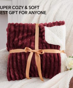 INFIIXSO Sherpa Fleece King Size Blanket – Super Soft & Warm Striped Fleece Blanket, Cozy Plush Fluffy Large Bed Blanket All Season Use (Borgoña, 104×90 Pulgadas)