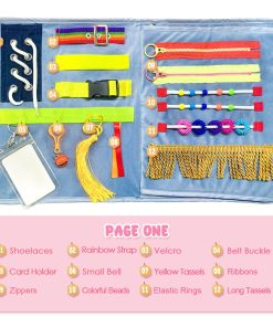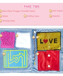 Nuestro diseñador elige el azul como color dominante porque el azul simboliza la calma y aporta confort visual a las personas. Los accesorios están diseñados con colores vivos para aportar estimulación visual. La manta sensorial está diseñada profesionalmente, incluyendo bolsillos para almacenar fotos, cinturones, campanitas, laberintos, cremalleras para los dedos, agujeros para cordones de zapatos, hebillas, lentejuelas de colores, tela de lana y diversas actividades que pueden involucrar a sus seres queridos durante horas.