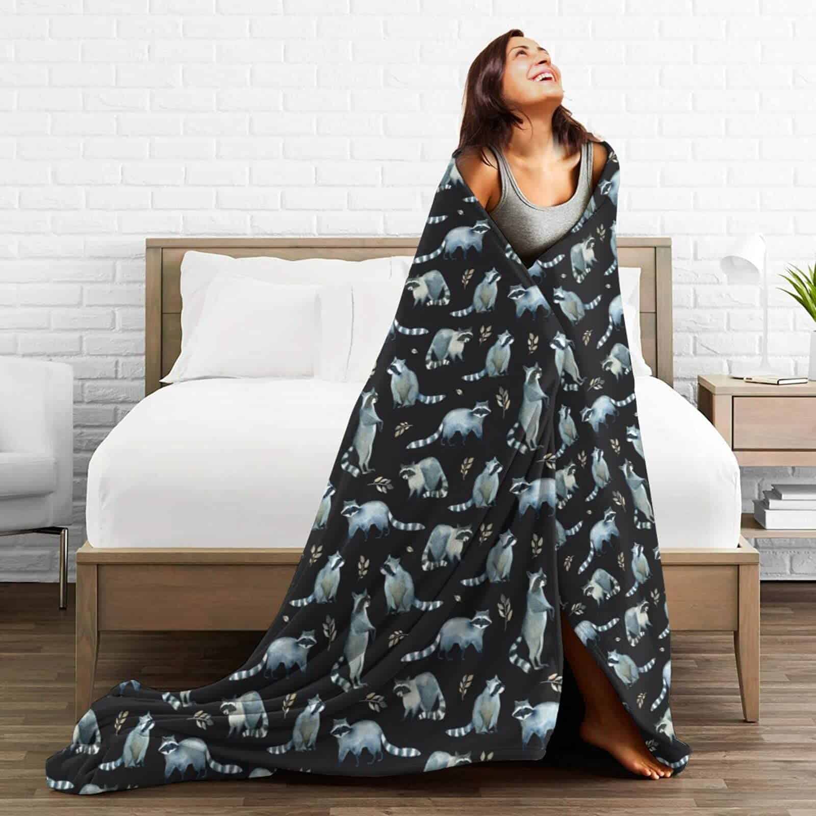 Manta de flecos de mapache ILEABEC súper suave para cama y