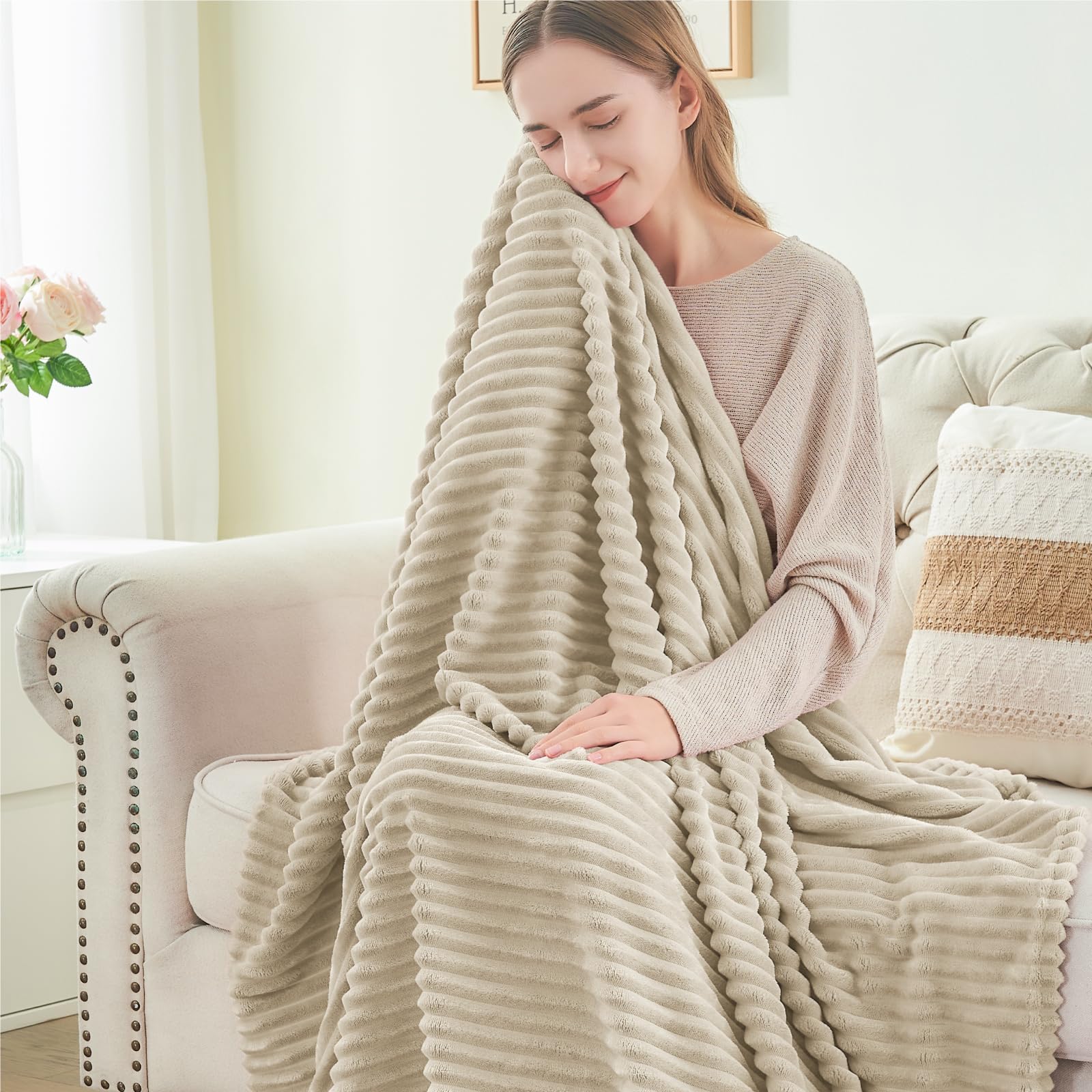 Manta de Forro Polar BEDELITE Tamaño King – Jacquard 3D Acanalado Suave y Cálido � Mantas Decorativas Peludas, Acogedoras, Esponjosas y Ligeras para Sofá, Cama (Lino, 108×90 pulgadas). Las mantas de forro polar BEDELITE están hechas de poliéster microfibra 100% y cepilladas para crear una suavidad adicional en ambos lados. El excelente patrón a rayas con relieve en 3D te ofrece sensaciones increíbles y súper calidez, mientras que las mantas ligeras evitan que te den sudor. El lujoso patrón a rayas jacquard en 3D dota a esta manta de tirar peluda de estética y decorativa. Con su diseño de textura clara y color naranja cálido, esta manta de tirar de otoño puede agregar un encanto distintivo a diferentes estilos de hogar. Decoración de otoño única para Halloween. También, un regalo ideal para familiares y amigos. Las mantas súper suaves y esponjosas brindan más comodidad y facilidad en el tiempo de descanso. Un compañero perfecto con nuestra manta súper acogedora mientras tienes una siesta cómoda en tu trabajo o ves series de televisión en el sofá. Y esta manta ligera la hace conveniente de usar y llevar al aire libre, lo cual es imprescindible para un campamento o viaje. Grosor perfecto para mantenerte cálido y transpirable durante todo el año. Envolverte en esta manta peluda, permite que el calor envuelva tu cuerpo en noches frías de otoño o invierno. Cubre tu regazo con suavidad y acogedor para disfrutar fuera en primavera o verano. Los patrones a rayas atemporales y los colores múltiples pueden completar los hogares de todas las estaciones. Las puntadas ordenadas mejoran las conexiones fuertes en las costuras y una mejor resistencia con una apariencia integrada. La excelente mano de obra hace que esta manta de forro polar sea duradera y fácil de cuidar. Sin encogimiento, sin decoloración y sin deshilachado después del lavado, lo que la convierte en una adición confiable y duradera a tu hogar.