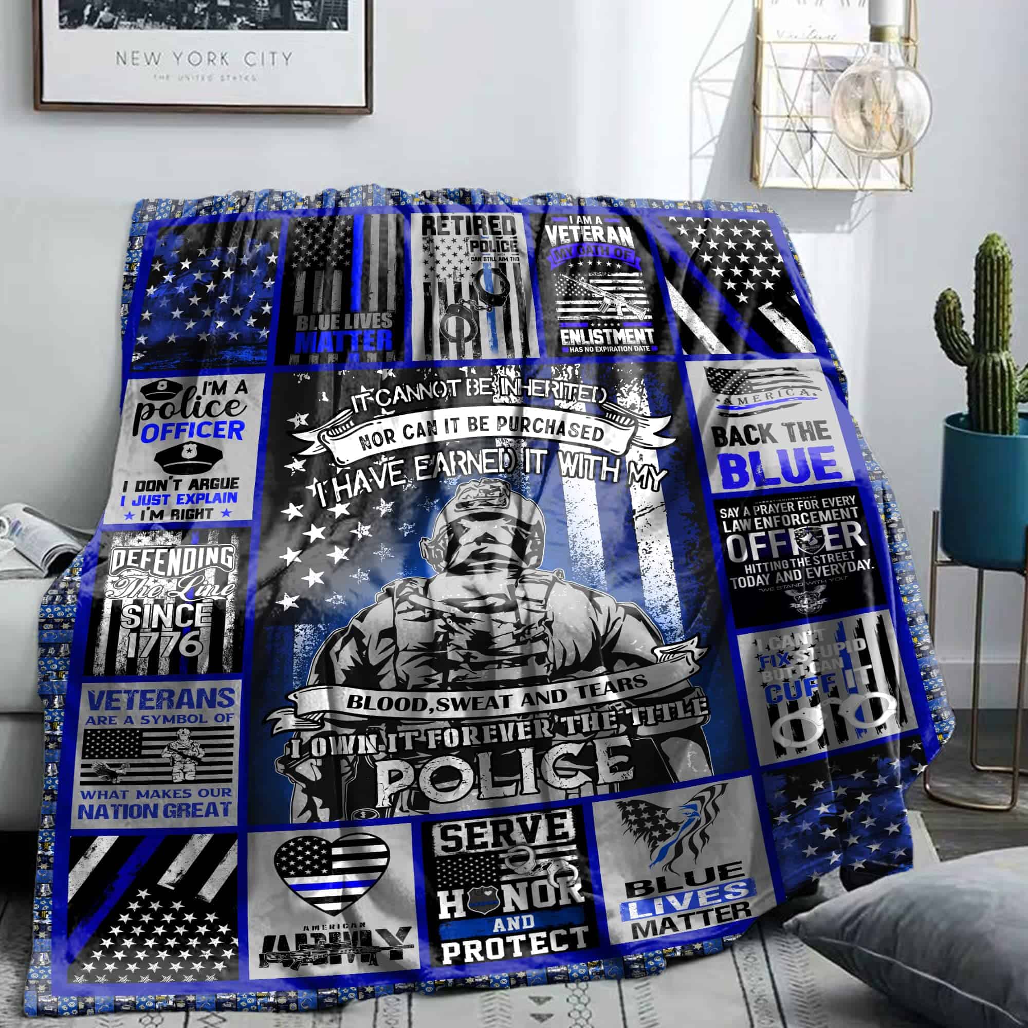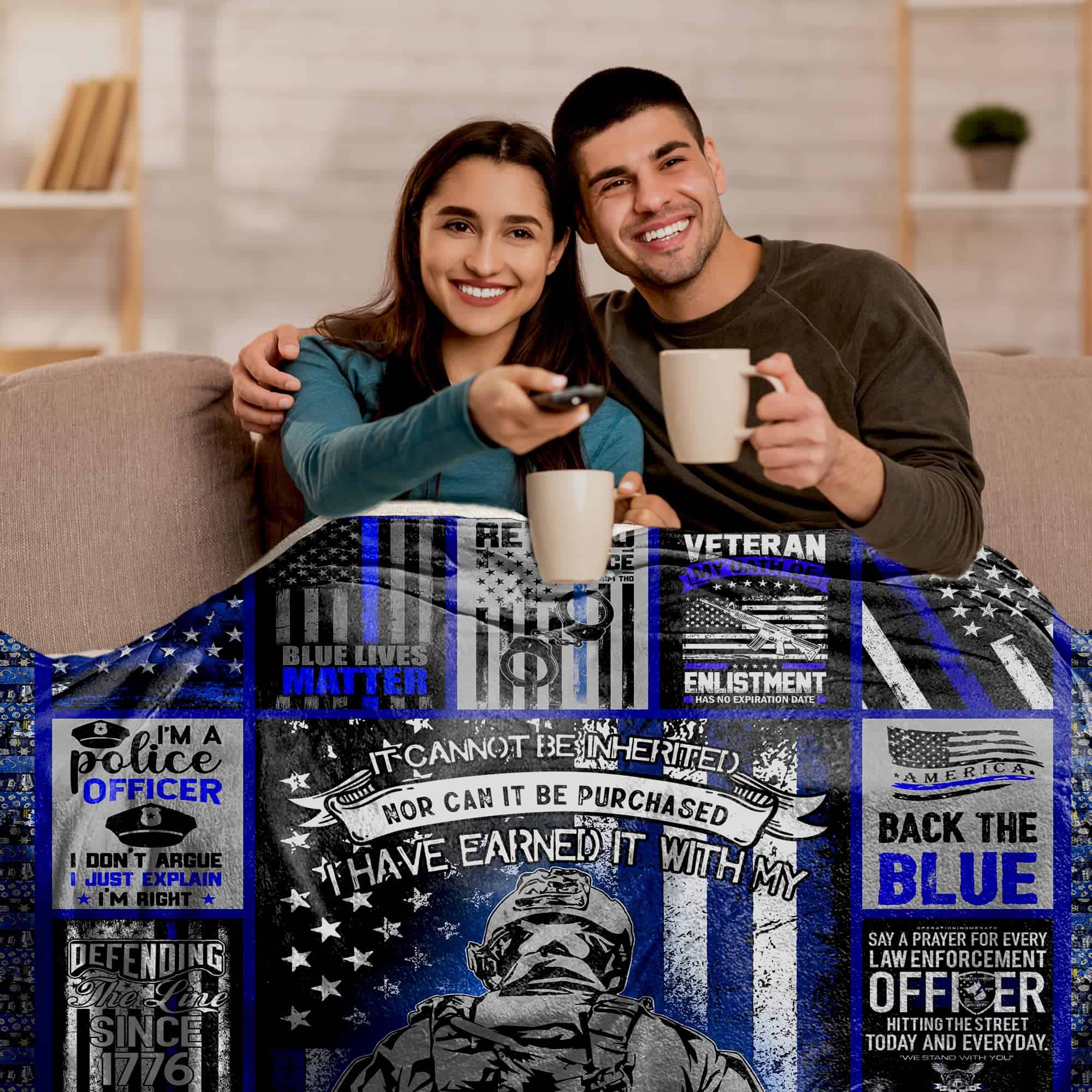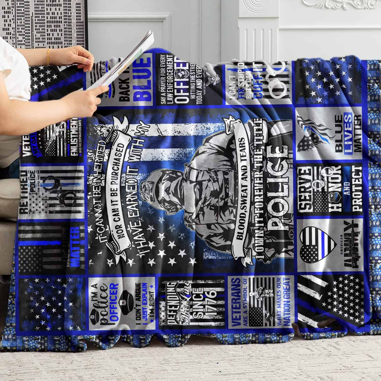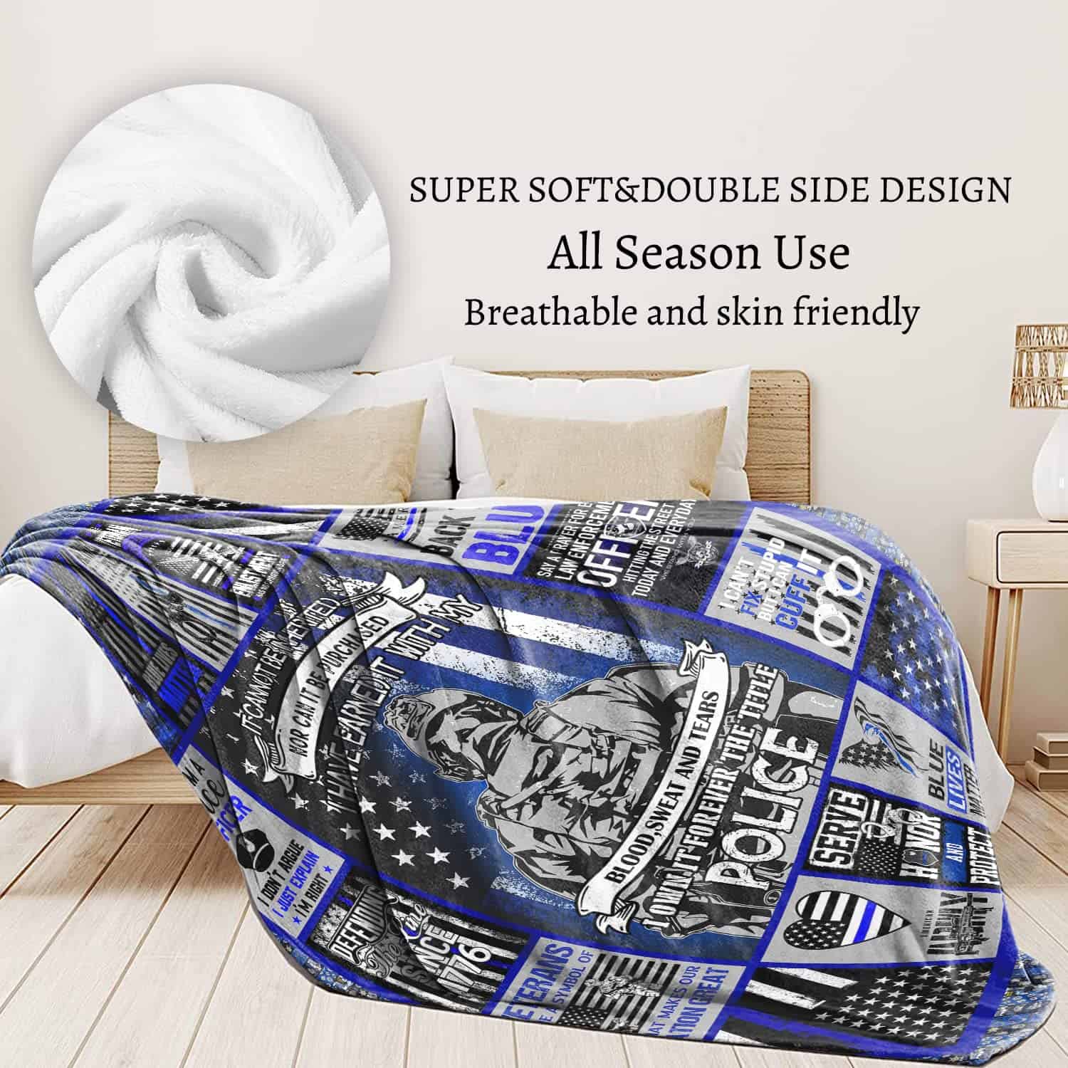 Manta de Forro Polar con Bandera de la Línea Azul Delgada