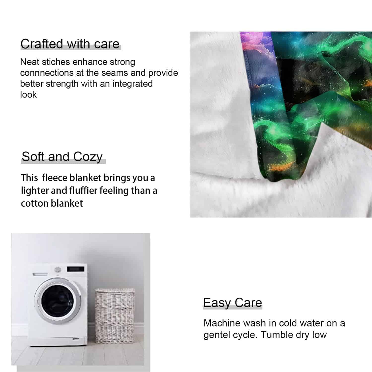 Hecha de 100% poliéster premium, las telas de microfibra de alta calidad pueden hacer que estas mantas acogedoras sean cálidas, esponjosas y duraderas en el uso a largo plazo. Impresa con colores vibrantes y no alérgicos que no se desvanecen, mantente a la moda con un diseño divertido, un regalo perfecto para todas las edades en cualquier ocasión. Utilizada como manta de TV, manta de sofá, colcha, ya sea en clima frío o en una habitación con aire acondicionado, la manta suave puede proporcionar calor para adultos, niños o mascotas. El tamaño es ligero y portátil, aplicable para uso en interiores y exteriores, adecuado para el hogar, la oficina, el auto, los viajes, el camping.