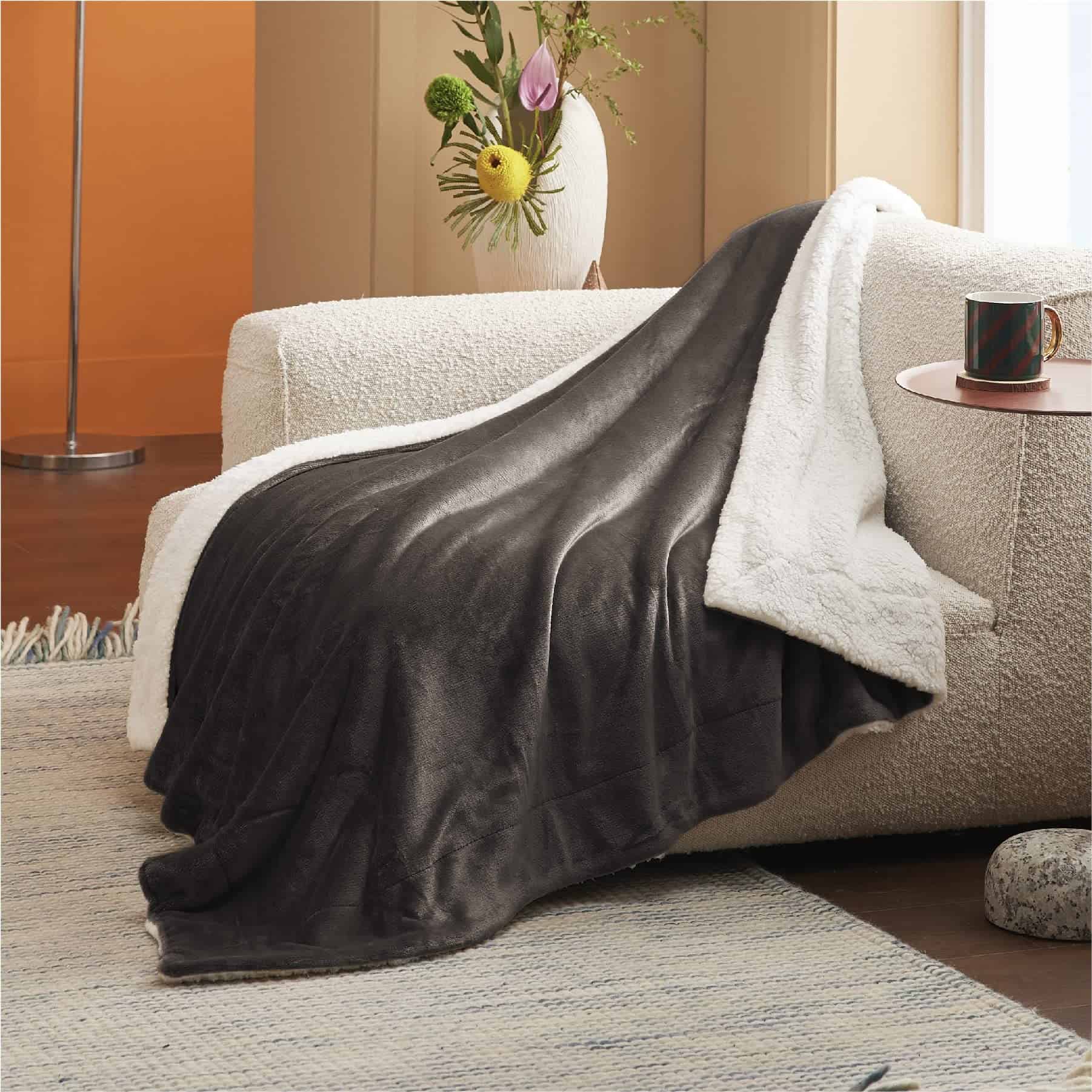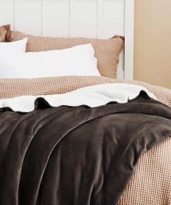 1. Suavidad Reversible: Titulada como la Ganadora de los Premios a la Mejor Ropa de Cama por Good Housekeeping, esta manta está diseñada con franela aterciopelada de 220 GSM en la parte superior y Sherpa extremadamente suave de 260 GSM en la parte trasera, esta manta acogedora de doble cara ofrece el máximo confort durante todo el año.