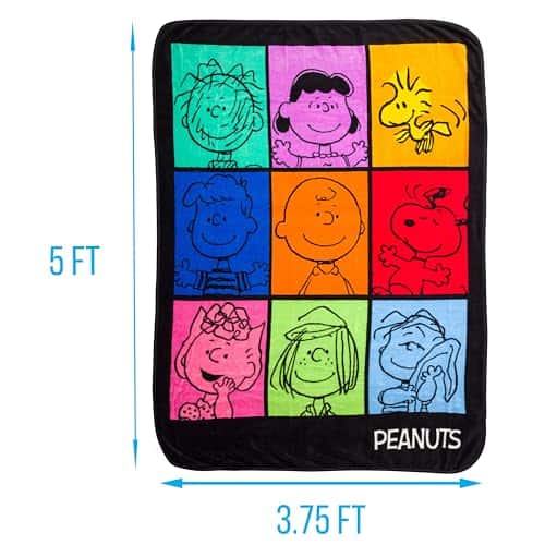 Mantente acogedor durante todo el invierno con esta manta de franela de Peanuts. Diseñada con un patrón de cuadrícula colorida, la manta cuenta con tus personajes de Peanuts favoritos: Charlie Brown, Snoopy, Peppermint Patty, Sally Brown, Lucy y más. Mide 45″ x 60″, perfecta para tu cama o sofá. Está hecha de 100% poliéster y franela de micro-peluche, perfecta para mantenerte caliente durante cualquier temporada o tu próxima noche de maratón de películas. La manta es lavable a máquina y se debe secar a baja temperatura. Esto hace un gran regalo para amigos y fanáticos de Peanuts de todas las edades. Ten la confianza de que estás comprando un producto oficial con licencia de Peanuts de Silver Buffalo. Silver Buffalo ofrece a los fanáticos su mercancía oficial de personajes favoritos. Trabajando en colaboración con licenciantes y marcas, Silver Buffalo desarrolla productos únicos, creativos e innovadores con devoción al detalle y la innovación. Silver Buffalo se enorgullece de fabricar y distribuir productos lúdicos que conectan a los fanáticos con sus personajes favoritos de dibujos animados, superhéroes, películas, series de televisión y más. ¡Celebra tu fanatismo!