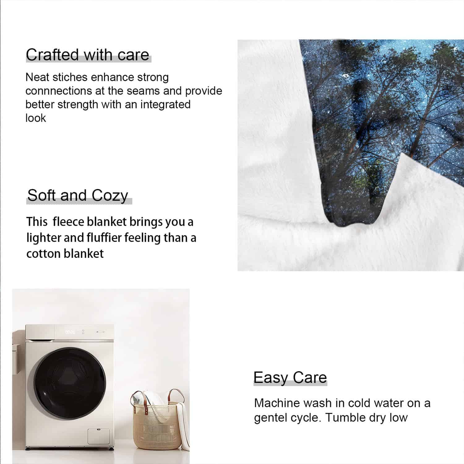 5. Instrucciones de lavado: Lavable a máquina y lavable a mano, fácil de cuidar, no utilizar blanqueador.