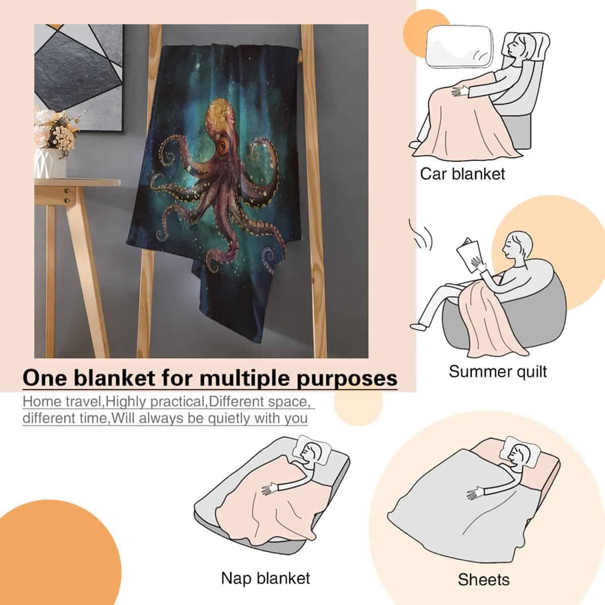 Manta de Franela Ultra Suave Ligera con Diseño de Pulpo