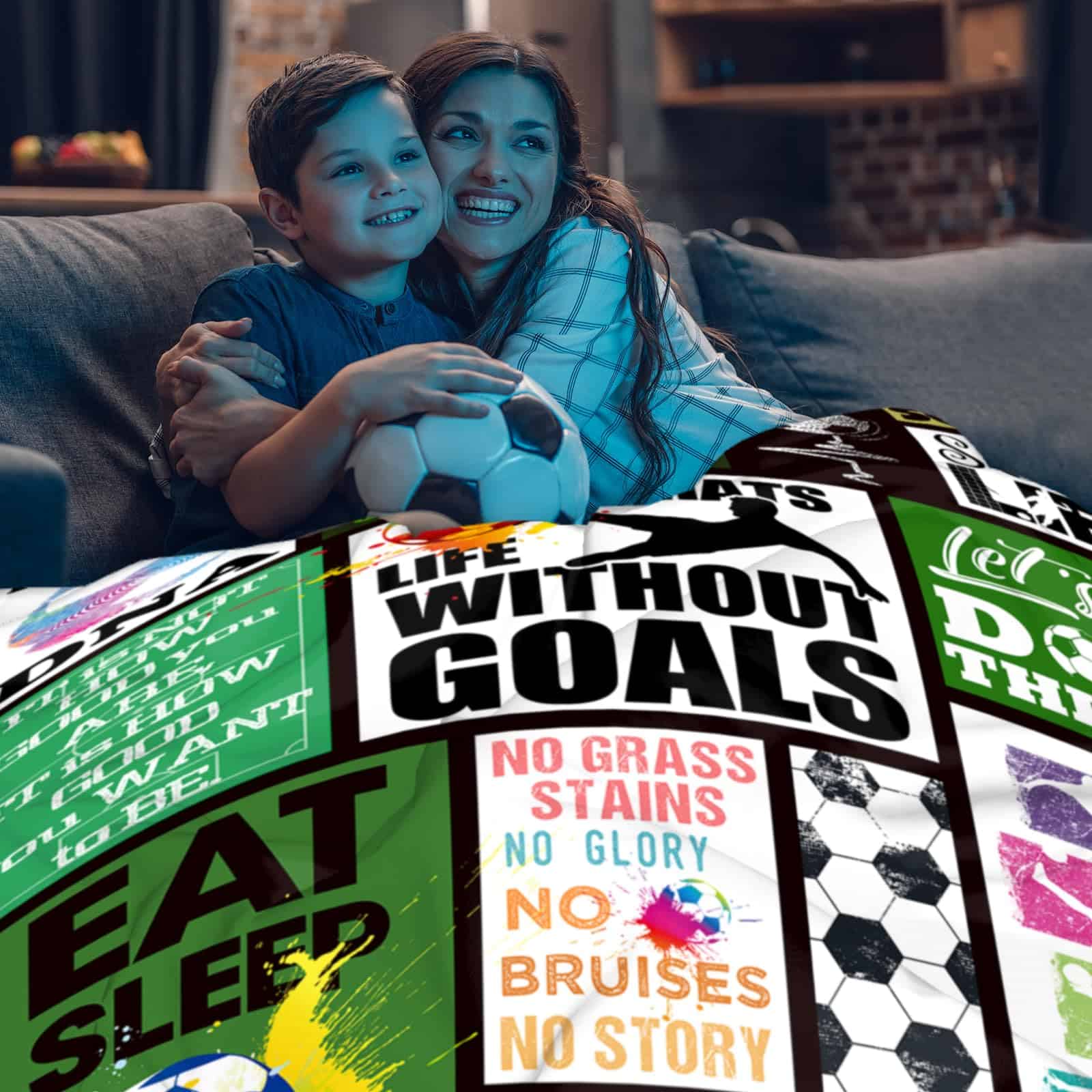 4. Uso Múltiple/Fácil de Cuidar de Regalos de Equipo/Entrenador de Fútbol: la Manta es Ideal para Actividades en Interiores y Exteriores: Dormitorio, Salas de Estar, Ropa de Cama, Sofá, Cama de Invitados, Habitación de Niños, Casa de Vacaciones, Viajes, Camping, Mochilero o para el Uso en una Habitación con Aire Acondicionado, Coche y Oficina. Debido a que la Manta de Sofá está Empacada al Vacío, Lávala una Vez para que se seque al Aire por un Tiempo Cuando Recibas el Paquete, la Manta se Expandirá.