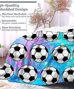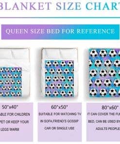 3. Tamaño perfecto: Disponible en tres opciones de tamaño, 50×40 pulgadas, 60×50 pulgadas, 80×60 pulgadas. Perfecto para interiores y exteriores, esta manta de regalo de fútbol agrega un toque lúdico a cualquier dormitorio o espacio habitable. Puede regalarse como una manta de fútbol para niñas o adolescentes amantes del deporte para brindarles calidez y espíritu de equipo.