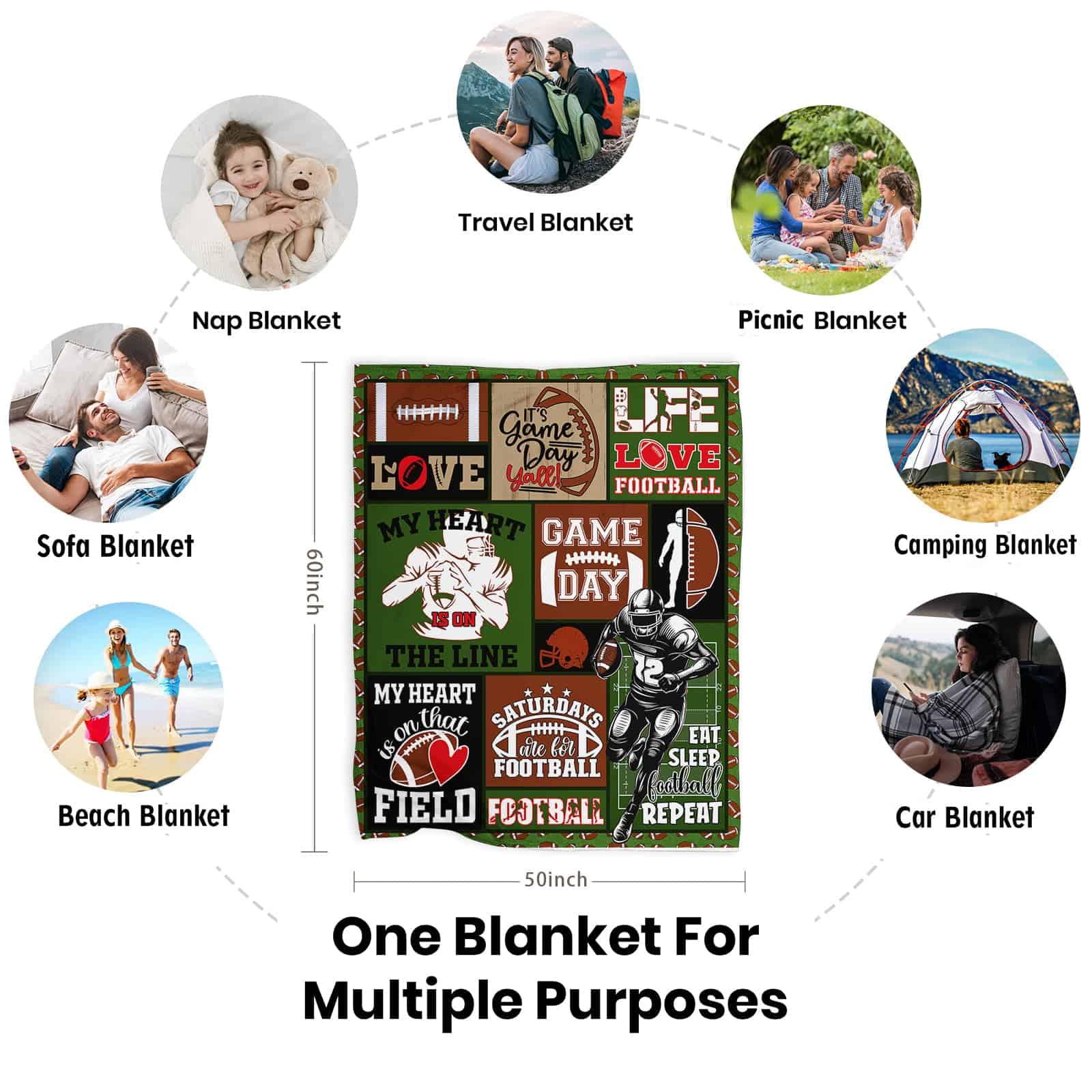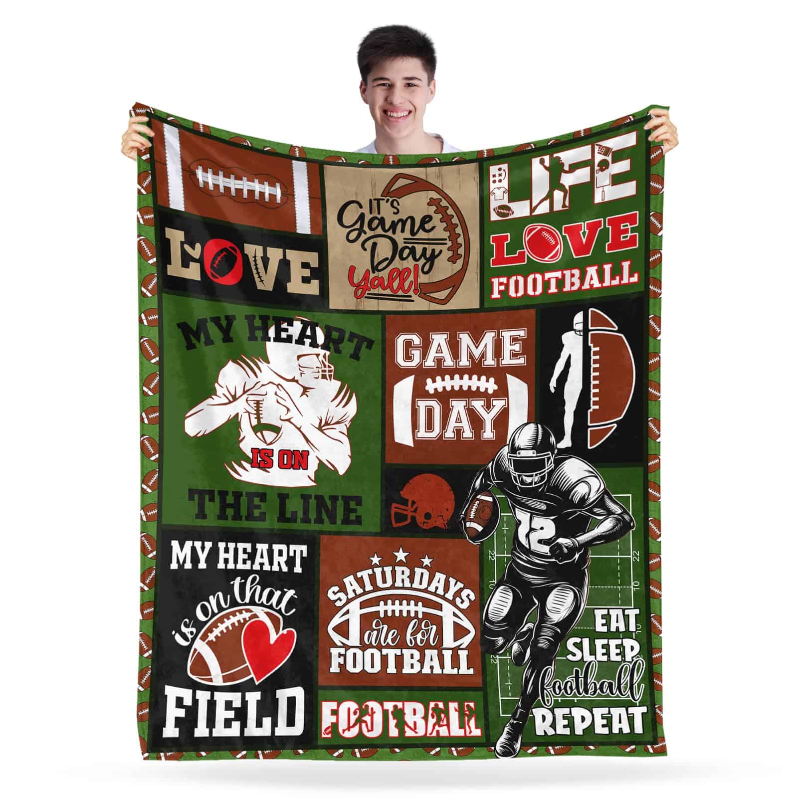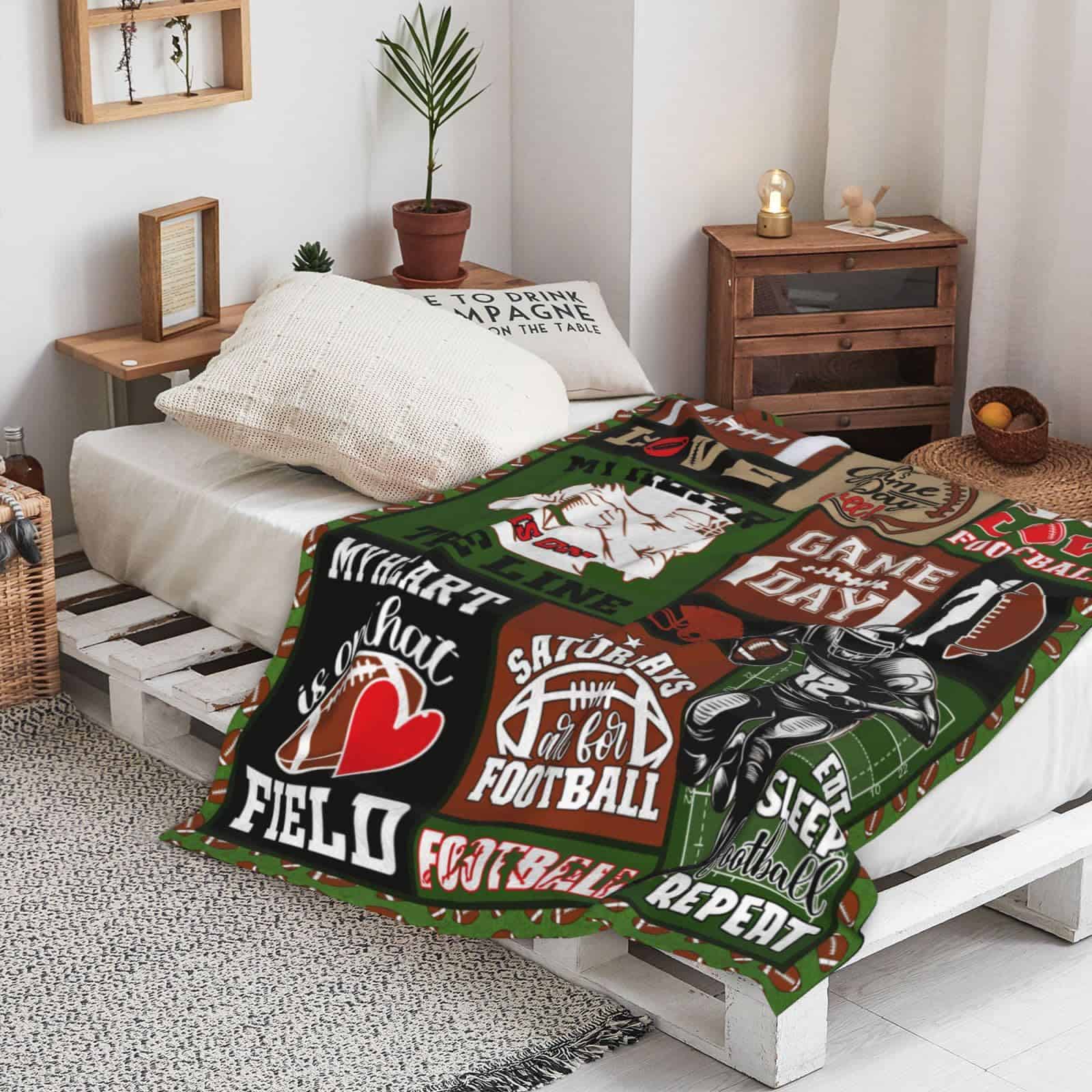 4. Regalos de Equipo/Entrenador de Fútbol Uso Múltiple/Fácil de Cuidar: Decoración de Fútbol para el Dormitorio de Niños Las Mantas y Throws son Perfectas para Actividades en Interiores y Exteriores – Dormitorio, Salas de Estar, Ropa de Cama, Sofá, Sofá, Habitación de Invitados, Habitación de Niños, Casa de Vacaciones, Viajar, Acampar, Mochilero o para Usar en una Habitación con Aire Acondicionado, Coche y Oficina. Debido a que la Manta está Empacada al Vacío, Por Favor Lávala Una Vez y Déjala Secar al Aire durante un Tiempo cuando Recibas el Paquete, la Manta de Fútbol se Expandirá.