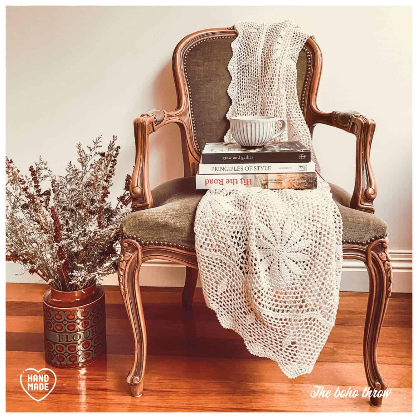 Manta de Ganchillo Boho Zenviro, 50″x60″, 100% Hecha a