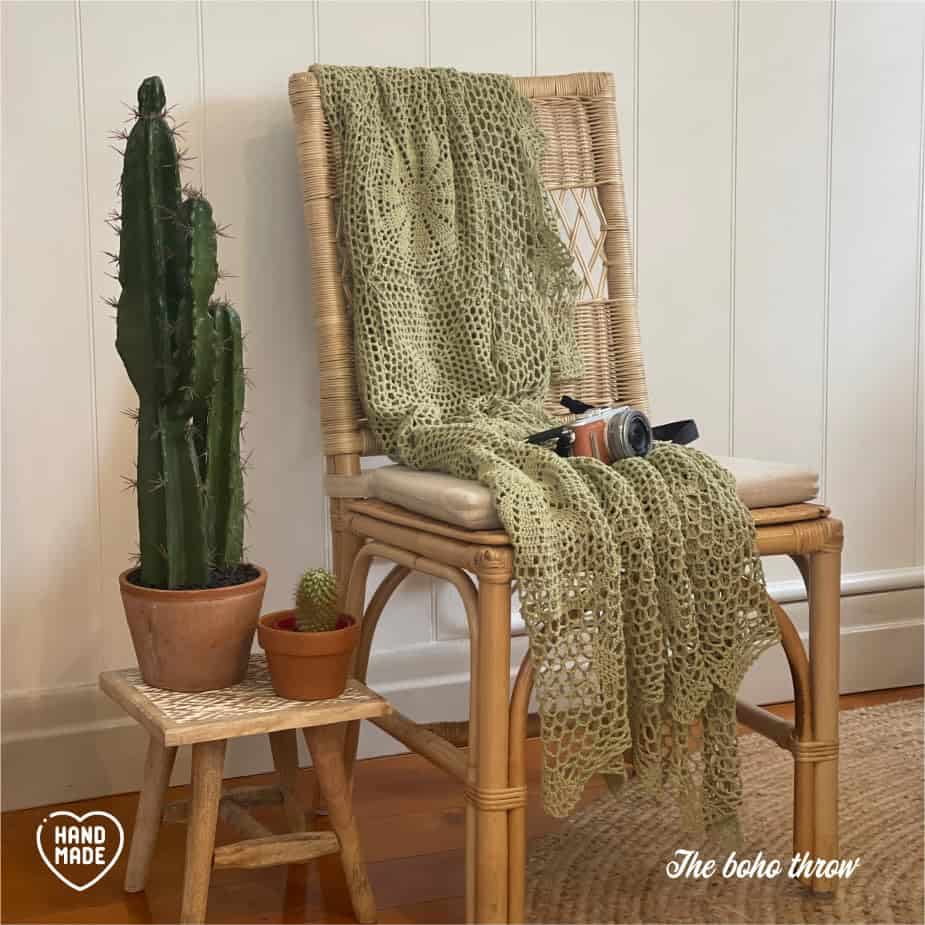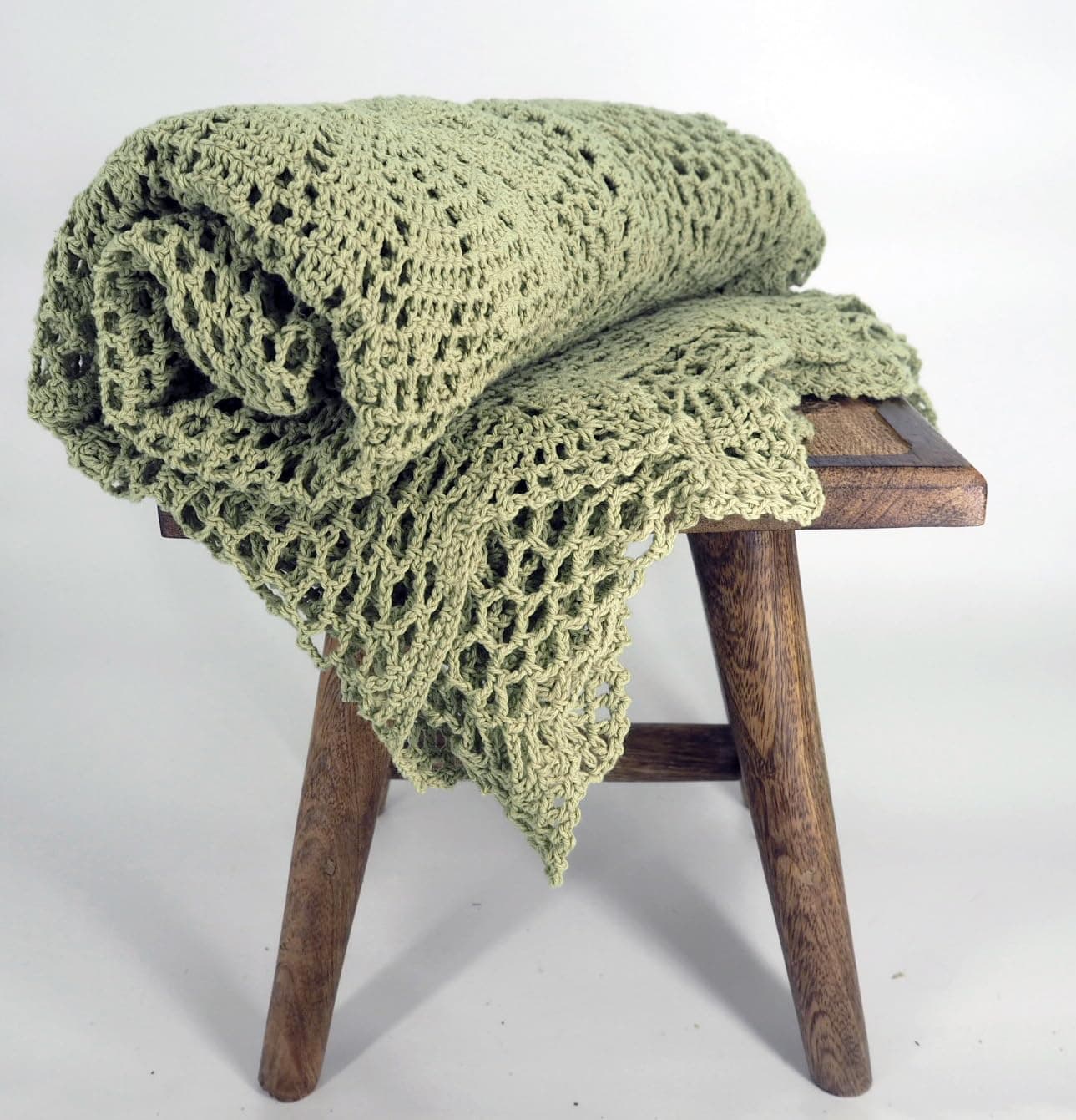 Manta de Ganchillo Boho Zenviro, Verde Salvia, 50″x60″,