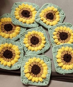 Manta de Ganchillo Granny, Manta de Tejido de Girasol Boho,