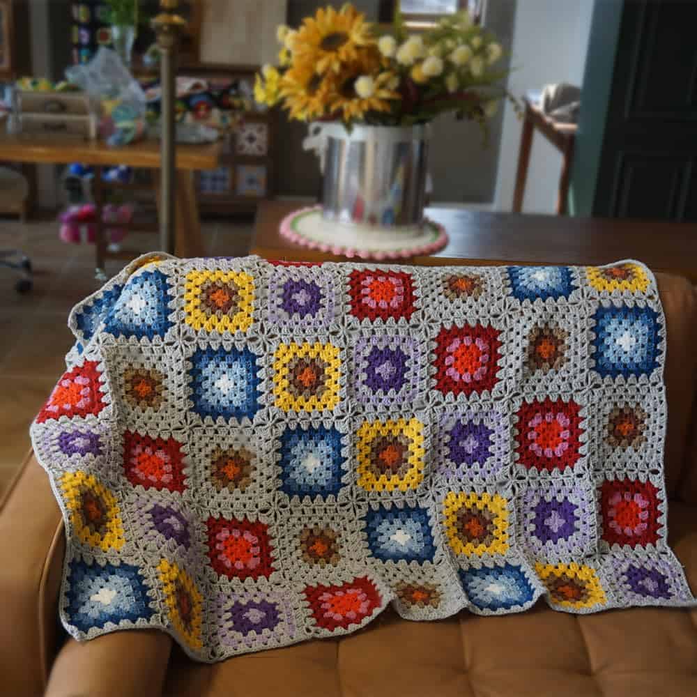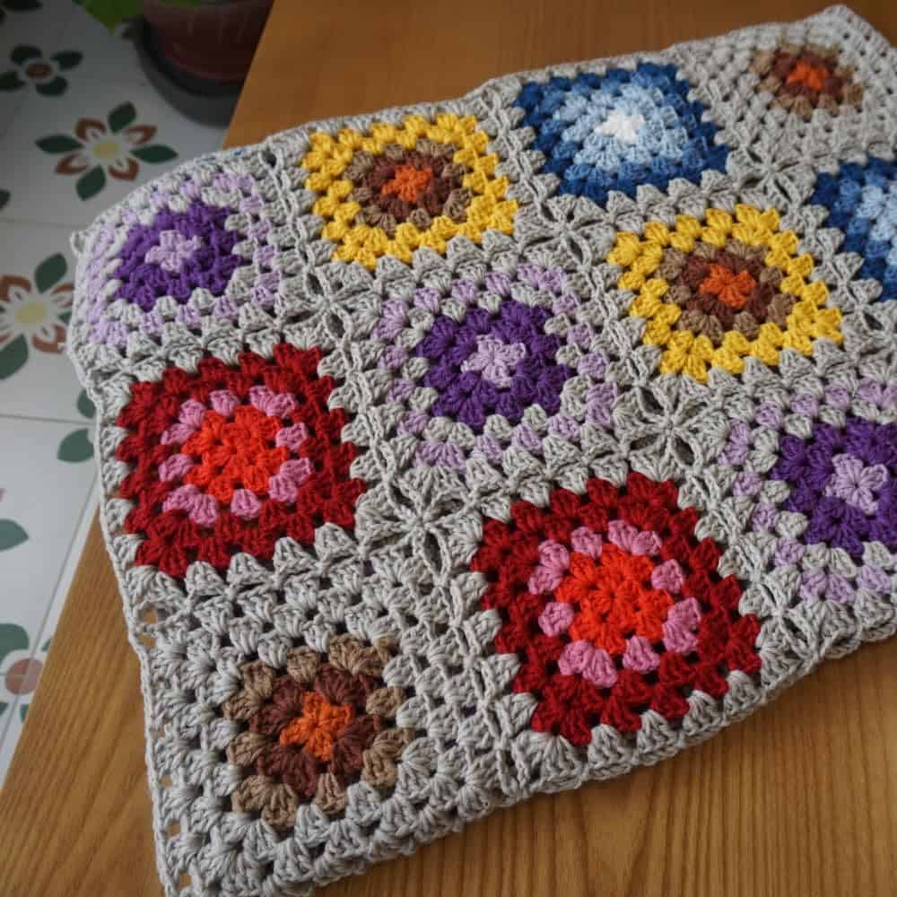 Manta de Ganchillo Hecha a Mano Estilo Cuadrados de la