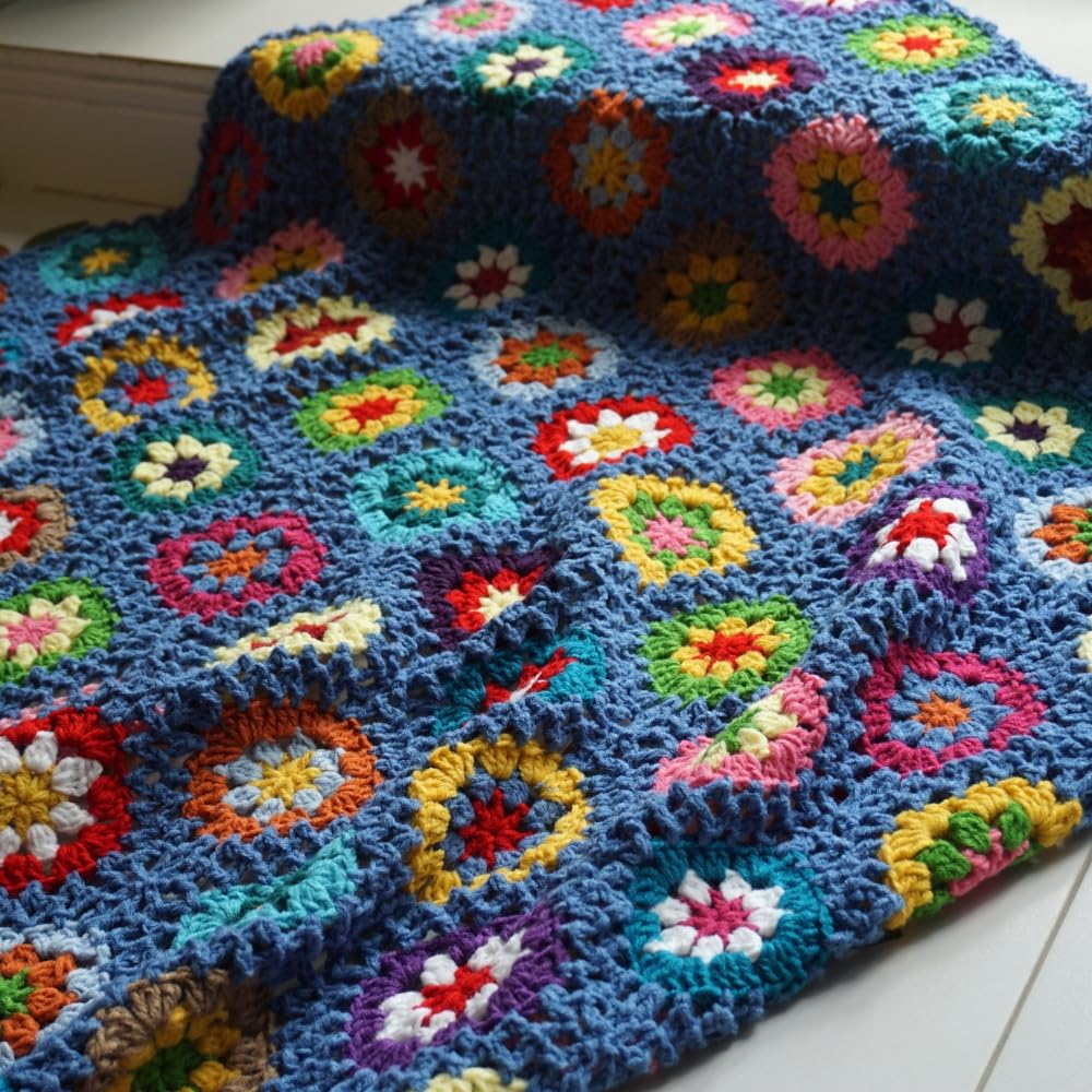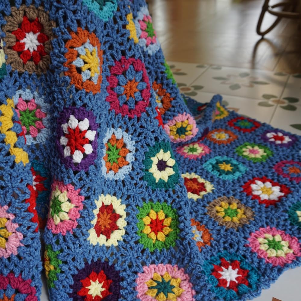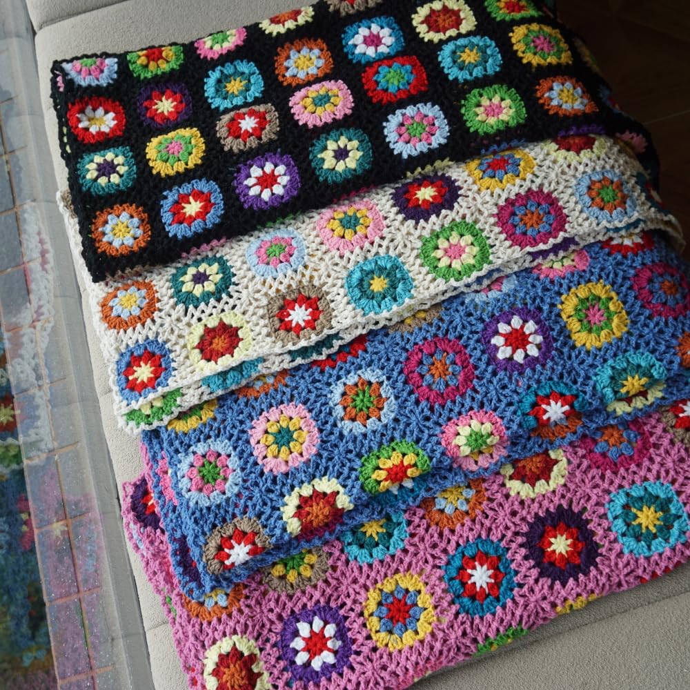 2. DISEÑO ÚNICO Esta manta de cuadrados de la abuela está hecha a mano y tiene una mejor textura, color de flor aleatorio.