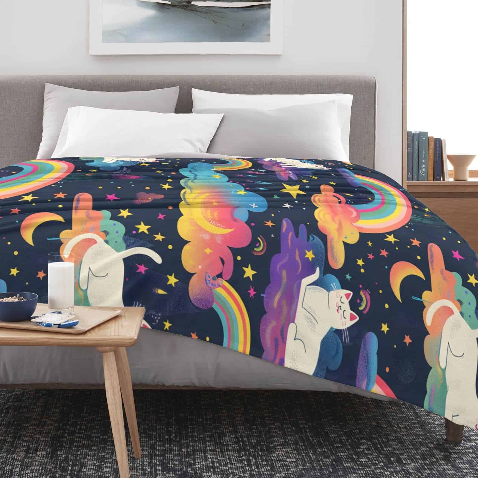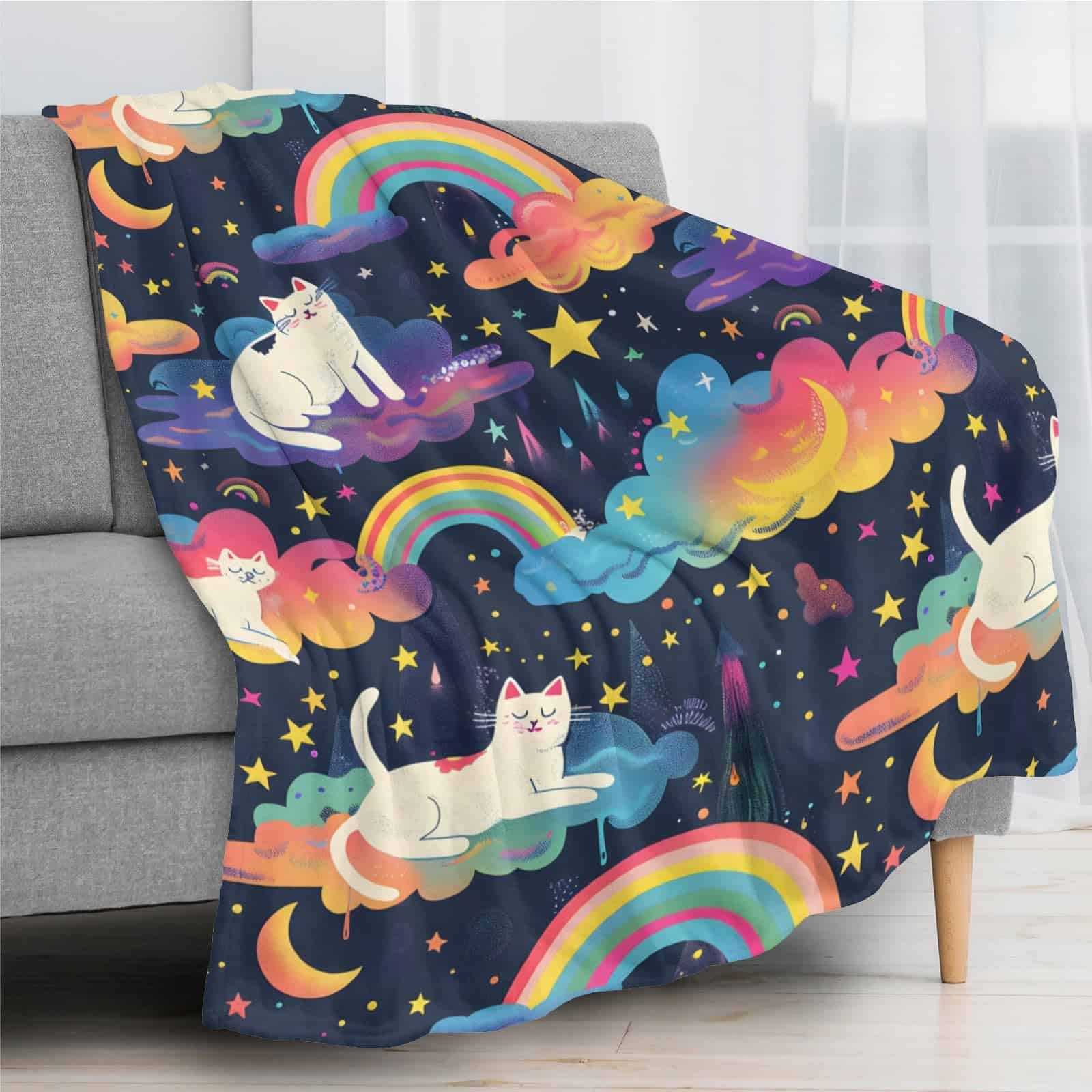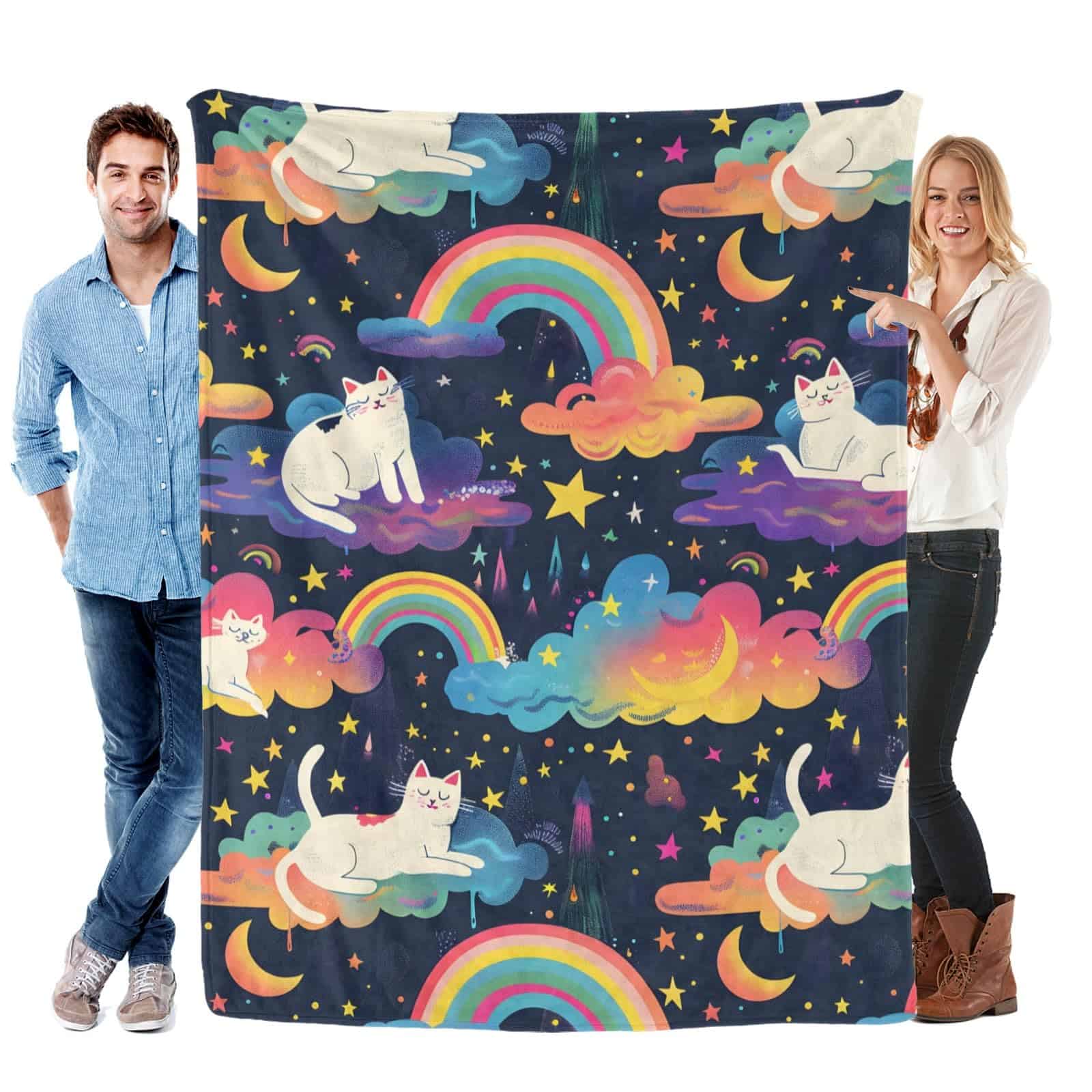 Nuestra manta de gato arcoíris es un regalo lindo y atento para tu familia, amigos y colegas. También es un regalo ideal para cumpleaños, día de San Valentín, día de la madre, día del padre, Navidad, bodas y fiestas de inauguración. La colorida manta de franela hace que la persona que la recibe se sienta feliz y cálida. Nuestra manta única es tu mejor elección de regalo. Además, ofrecemos servicio de reemplazo y reembolso gratuito si no estás satisfecho con la manta. Disfruta de esta manta de cama suave y acogedora con confianza. Estamos comprometidos con tu experiencia de compra, no dudes en hacernos saber todas tus preguntas.