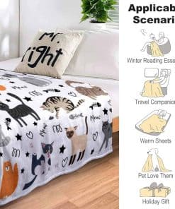 Esta Suave Manta de Franela, con un Adorable Diseño de Gato, es Perfecta para Aquellos que son Amantes de los Gatos. Es Ideal Como Regalo para Amigos y Familiares.