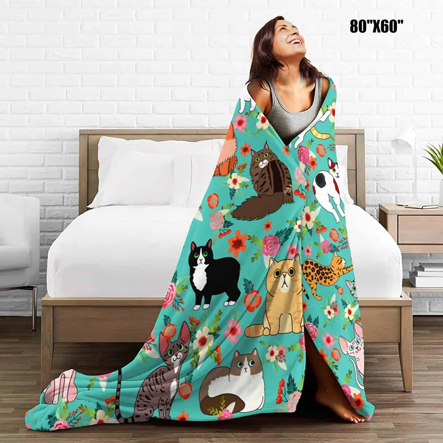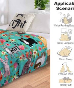 1. Material Premium: La manta suave está hecha de franela suave, se siente bien. Ligera, se puede doblar de forma compacta y se siente excelente.
