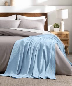 Manta de Gofre Azul Claro Bare Home, Tamaño Throw 44Wx66L,