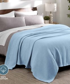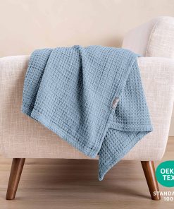 Manta – Algodón – Gofre – Throw – Azul Claro – tela cubre sofá, manta para padre, manta para cama, manta de cama, manta de sofá, manta de verano, manta exterior, manta para perro, manta de viaje, manta de picnic, manta