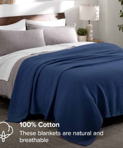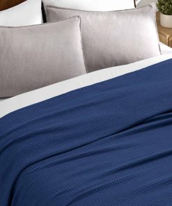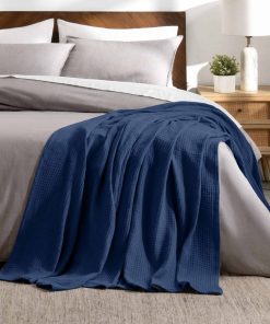Manta – Algodón – Gofre – Twin/Twin XL – Azul Oscuro – Manta para cubrir el sofá, manta para el día del padre, manta para la cama, manta de cama, manta de sofá, manta de verano, manta para exteriores, manta para perros, manta de viaje, manta de picnic, manta