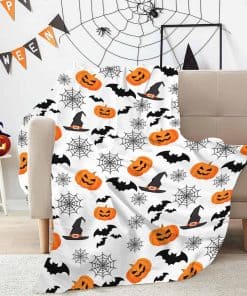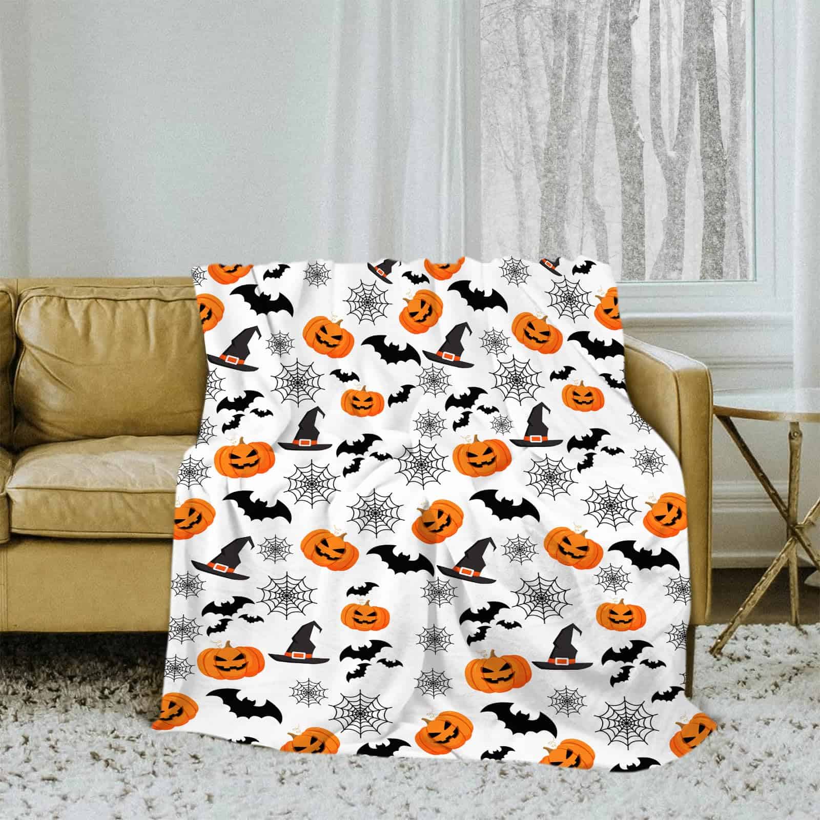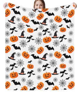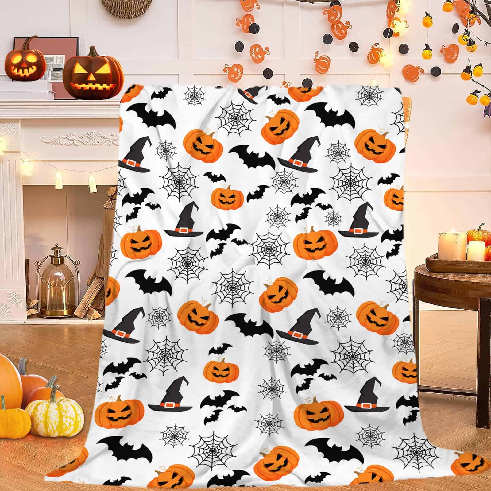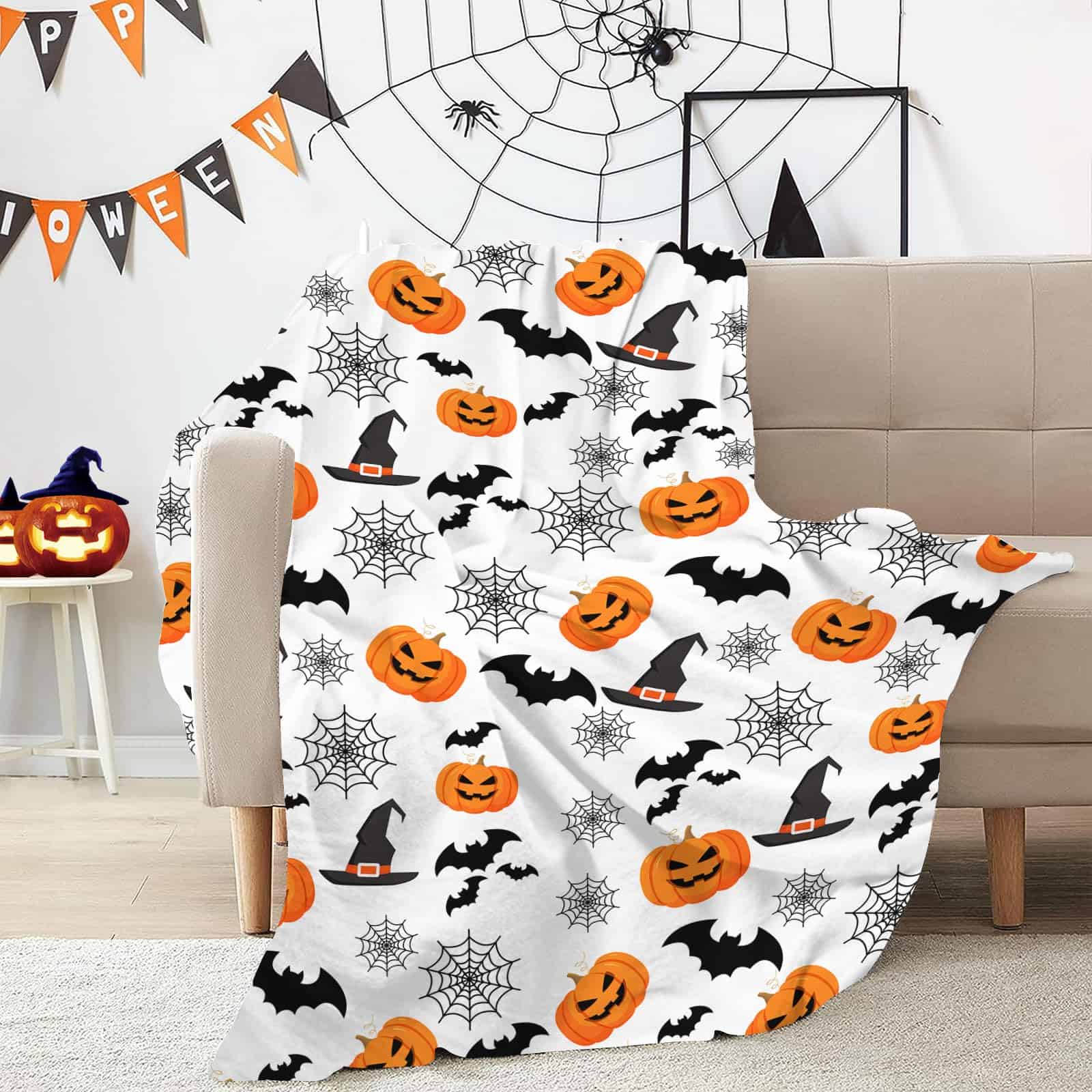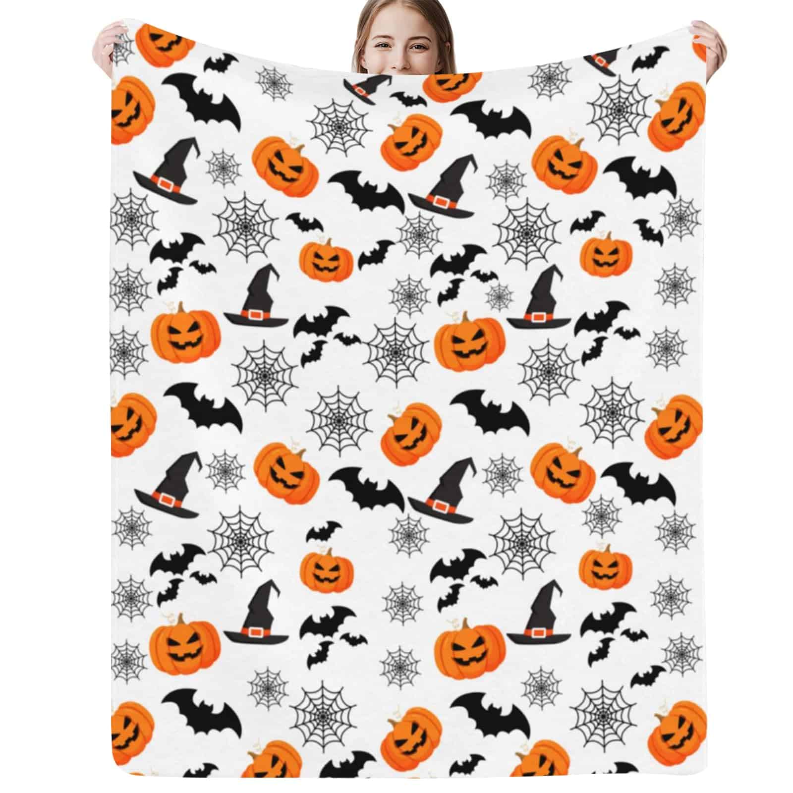 Manta de Halloween Telarañas Calabazas Sombrero de Bruja