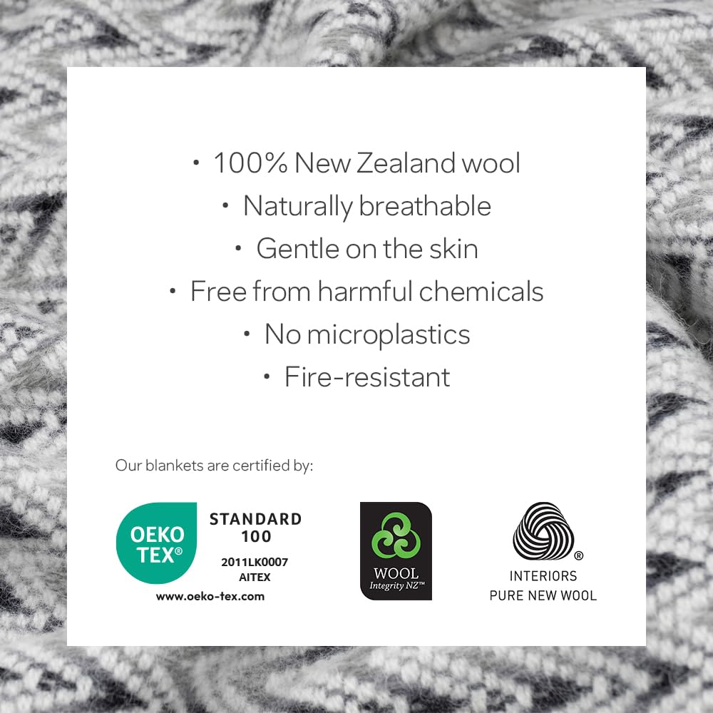 Manta de interior Barker Textiles Shady Wave en color gris, perfecta para añadir calidez y estilo a tu hogar. Esta manta está fabricada con un 100% de lana de Nueva Zelanda, lo que la hace suave y cómoda al tacto. Su diseño moderno la convierte en el complemento ideal para cualquier ambiente. La manta es increíblemente suave y cálida, adaptándose de forma perfecta a la temperatura de tu cuerpo sin resultar demasiado pesada. Además, esta manta está libre de productos químicos dañinos y microplásticos, por lo que es una opción segura y respetuosa con el medio ambiente.
