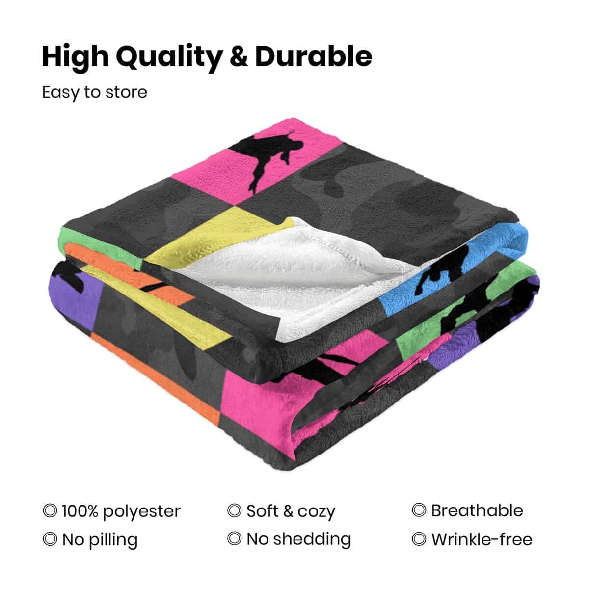 Disponible en 3 tamaños versátiles (40×50, 50×60, 60×80 pulgadas), nuestra Manta de Juego Colorida es perfecta para jugadores de todas las edades y preferencias. Úsala como colcha, manta de sofá o llévala en tu próxima aventura como compañera de viaje. Ya sea que estés acampando, de picnic o simplemente relajándote en casa, esta manta temática de videojuegos te tiene cubierto.