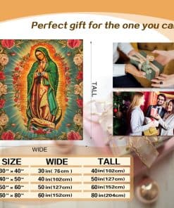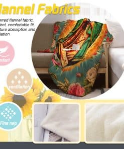 Nuestra manta de la Virgen de Guadalupe es perfecta para colocar en tu sofá, cama o incluso para viajar. Hecha de franela cálida, suave y acogedora, esta manta es pura comodidad. Ya sea que estés viendo una película, leyendo un libro o tomando una siesta rápida, esta manta liviana te mantendrá abrigado. Fácil de transportar, ideal para salidas, campamentos o incluso como manta de oficina o automóvil. Esta manta collage con personajes de la Virgen María y Jesús no es solo una manta; es una expresión de tu amor por el cristianismo y la fe católica.