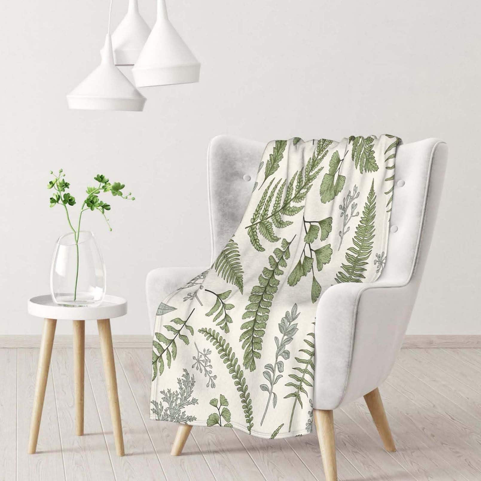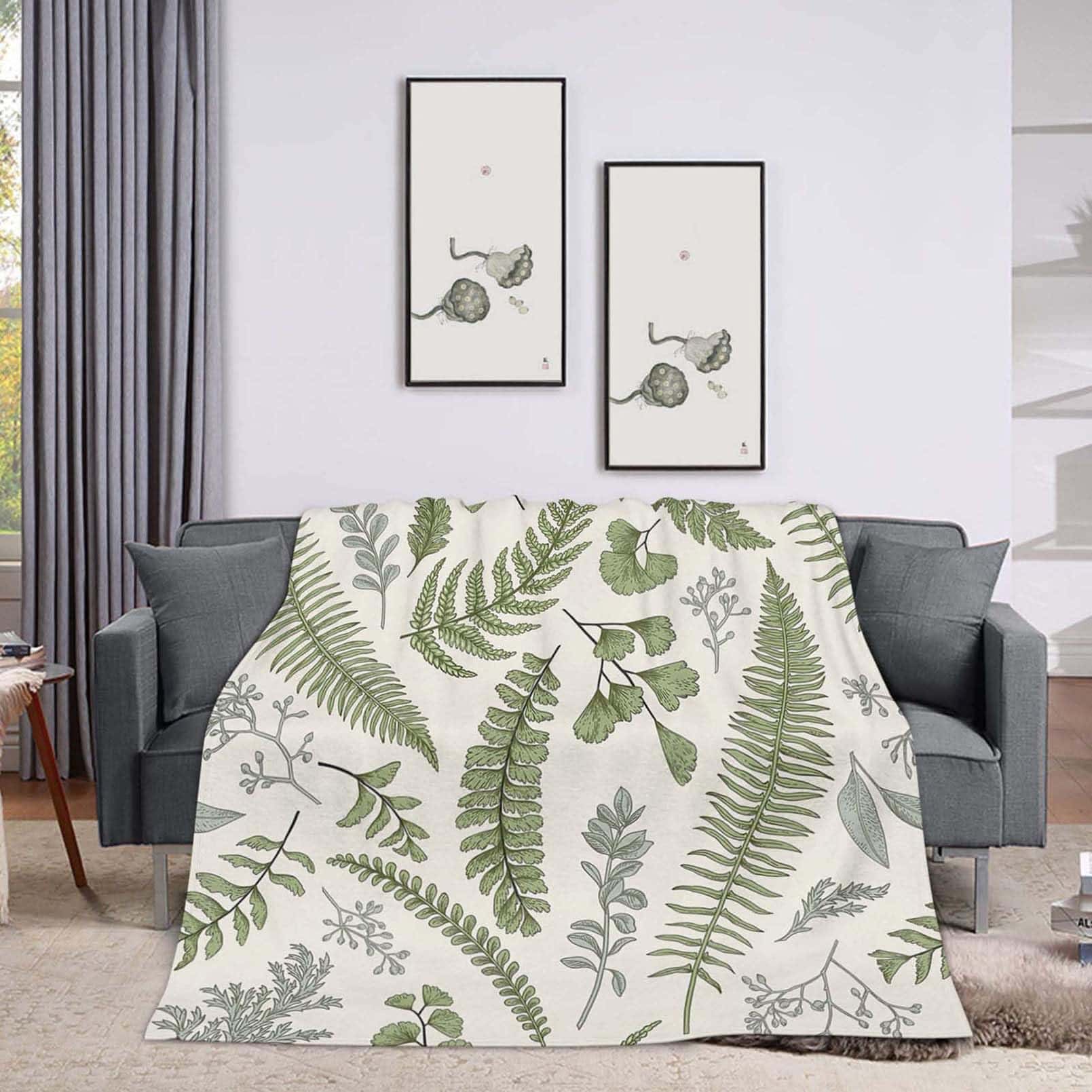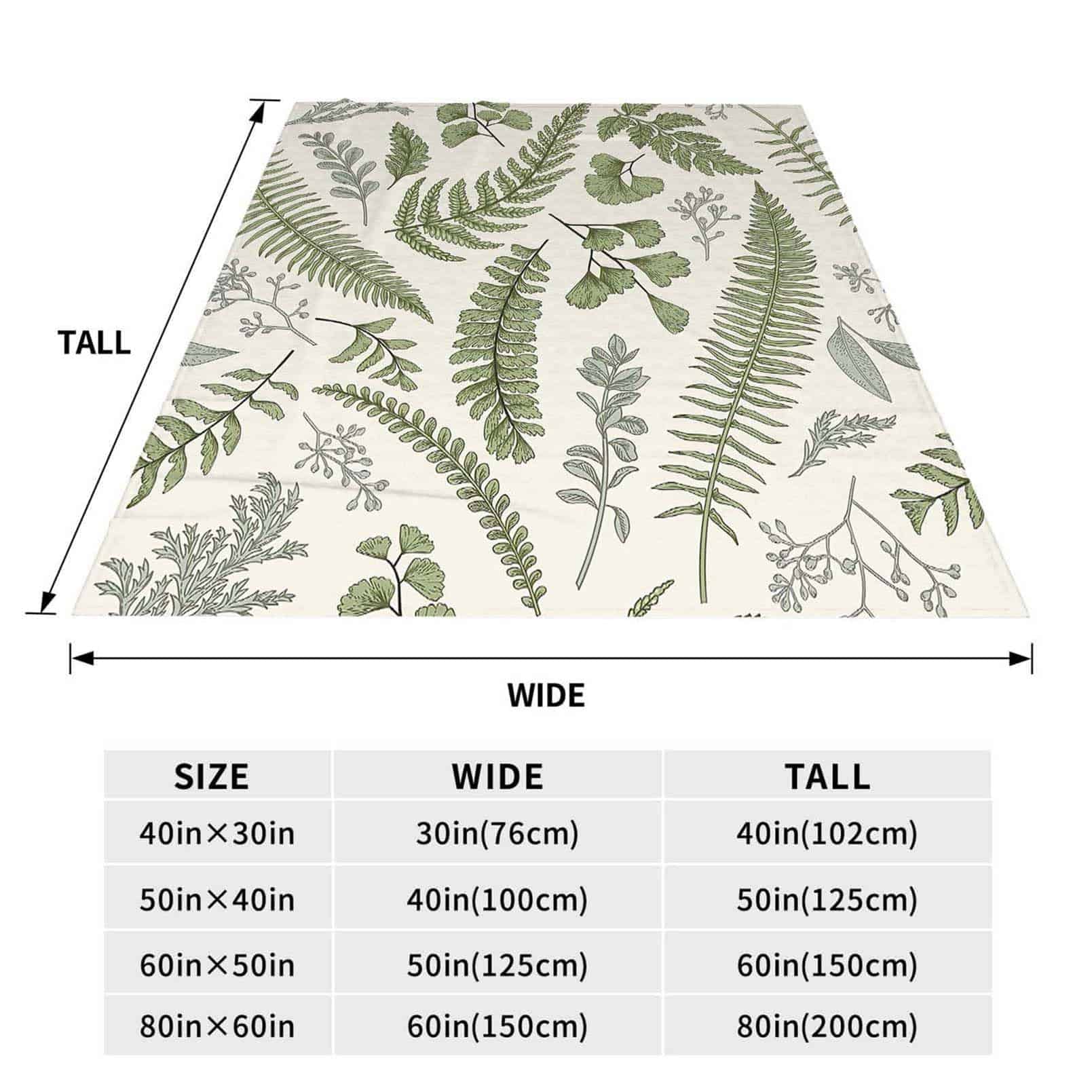 Manta de Lana 60×80 Pulgadas, Estampado de Hojas de Helecho