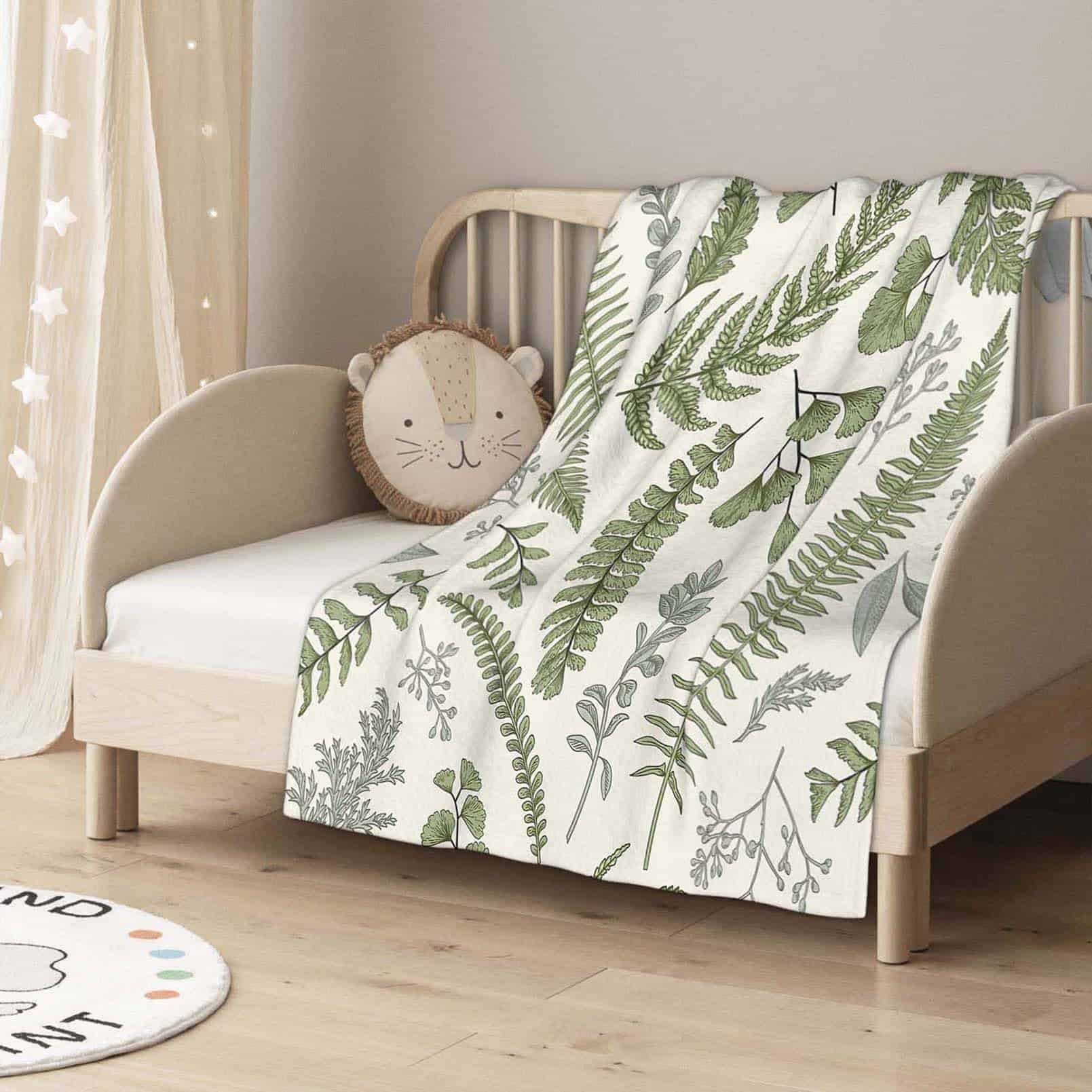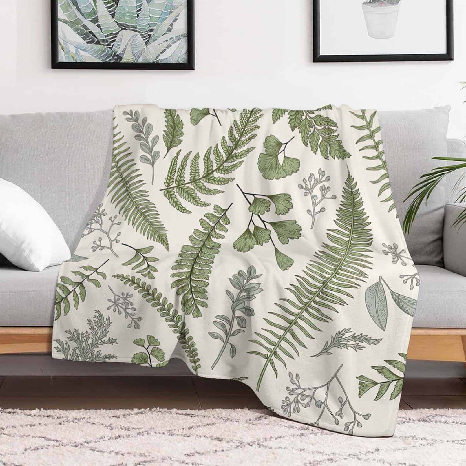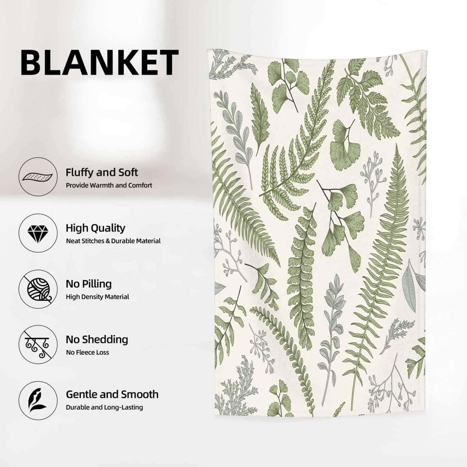 Manta de Lana 60×80 Pulgadas, Estampado de Hojas de Helecho