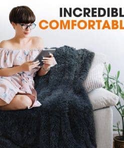 3. DISEÑO VERSÁTIL Y DE DOBLE CARA: ¡Disfruta de lo mejor de ambos mundos! Un lado presenta un lujoso pelaje esponjoso, mientras que el reverso ofrece microplush suave. Esta acogedora manta es perfecta para usarla durante todo el año para abrazarse durante los fríos inviernos o las noches de verano frescas.
