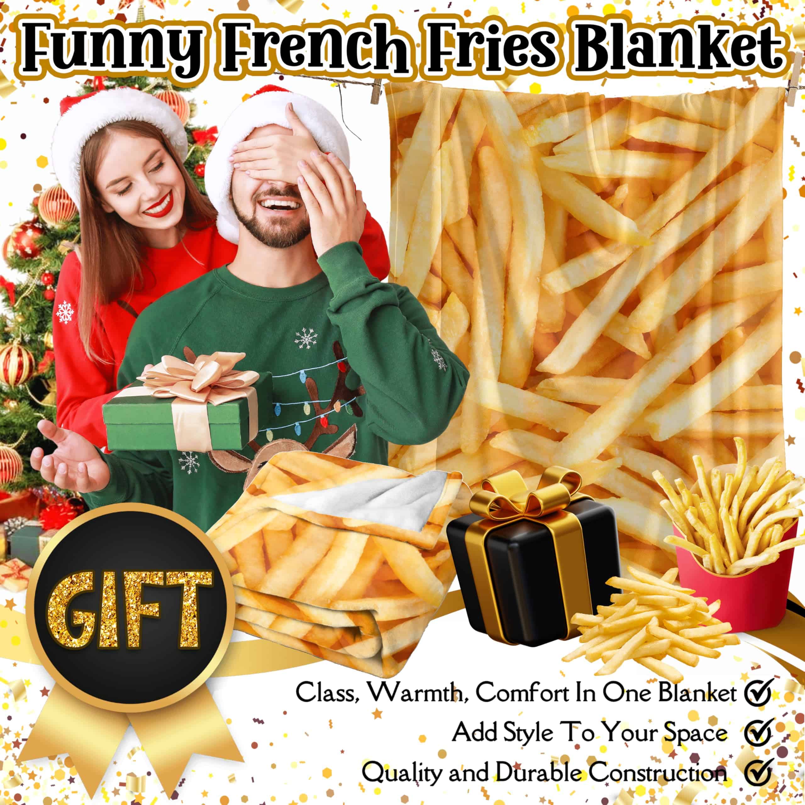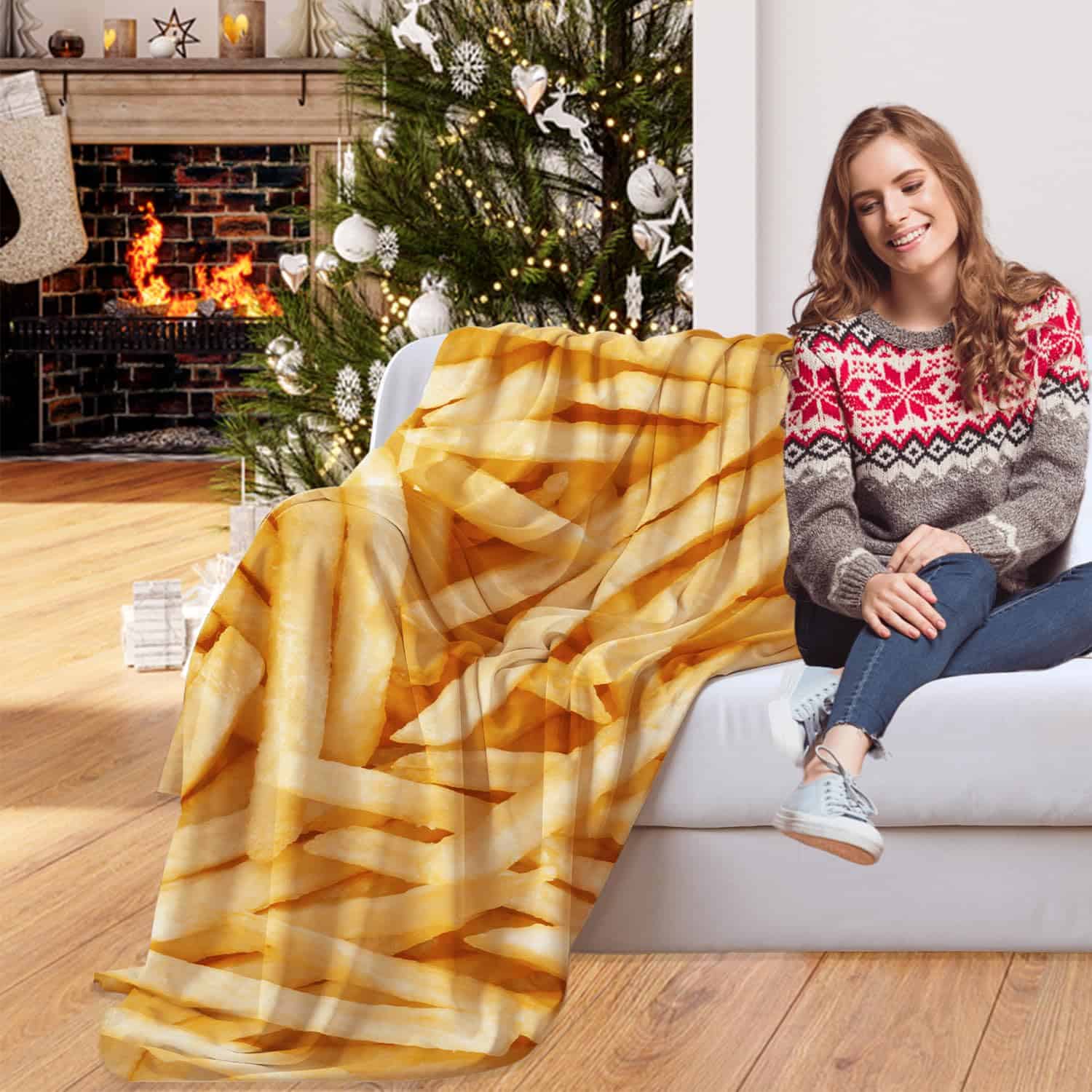 Manta de Lana Comida Papas Fritas Súper Suave y Acogedora