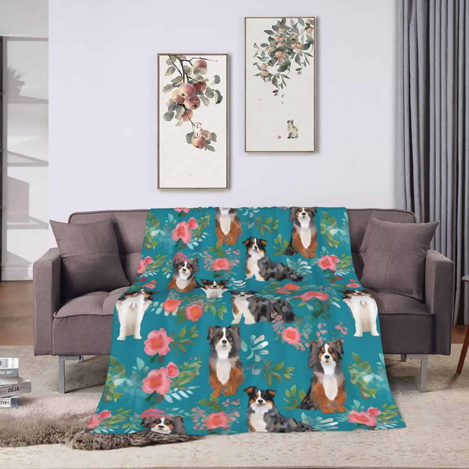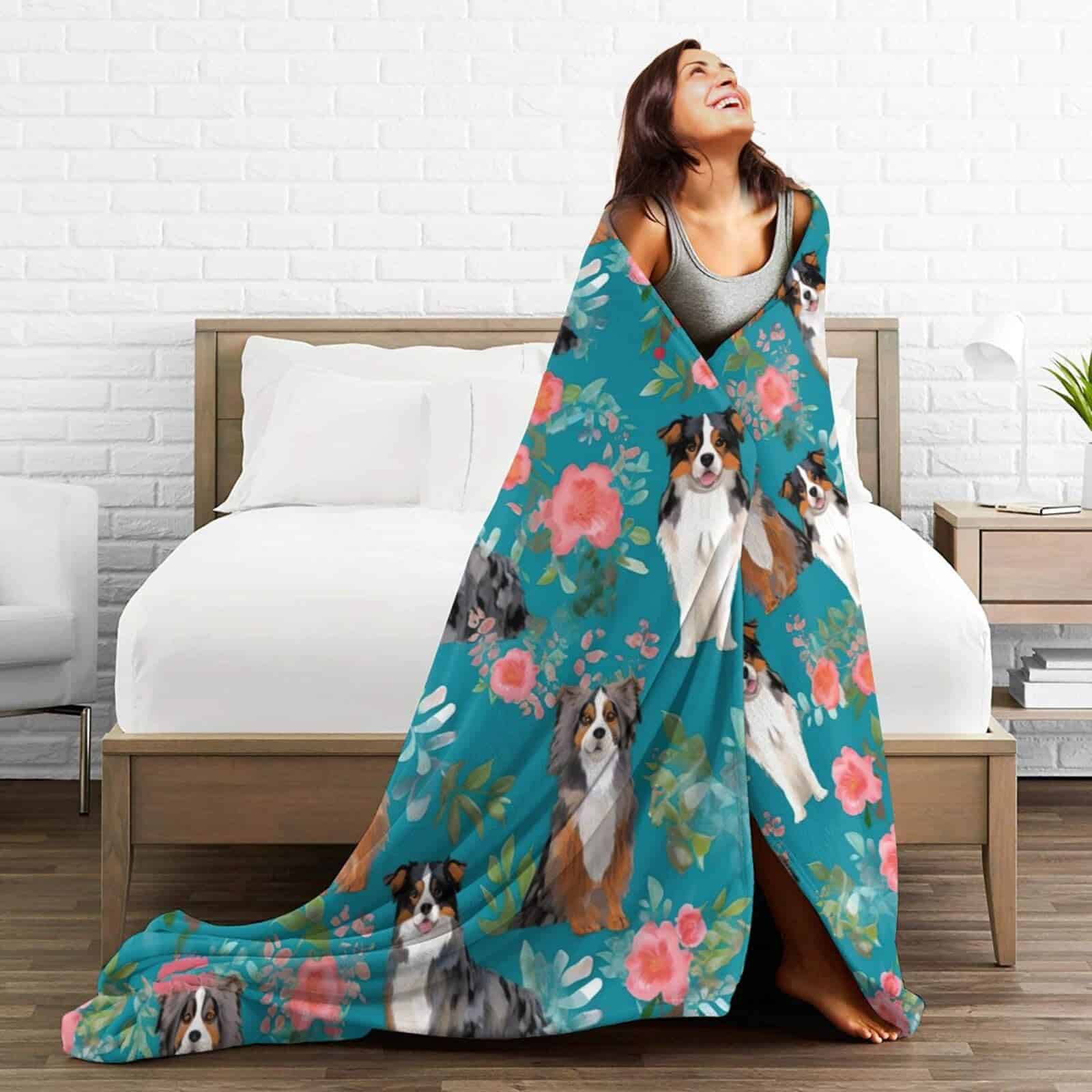 Manta de Lana con Estampado de Australian Shepherd Dogs –