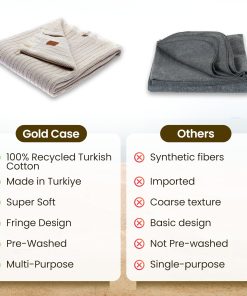 Disfruta de la comodidad exquisita en cualquier lugar y en cualquier momento con nuestra manta de lana con funda de oro para sofá. Fabricada con el mejor algodón turco reciclado, esta manta suave invita al puro confort en todas tus ocasiones, ya sea para una noche acogedora o una maratón de series de TV.